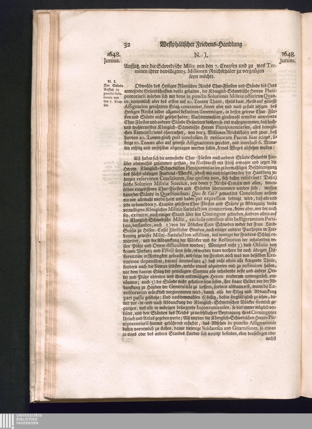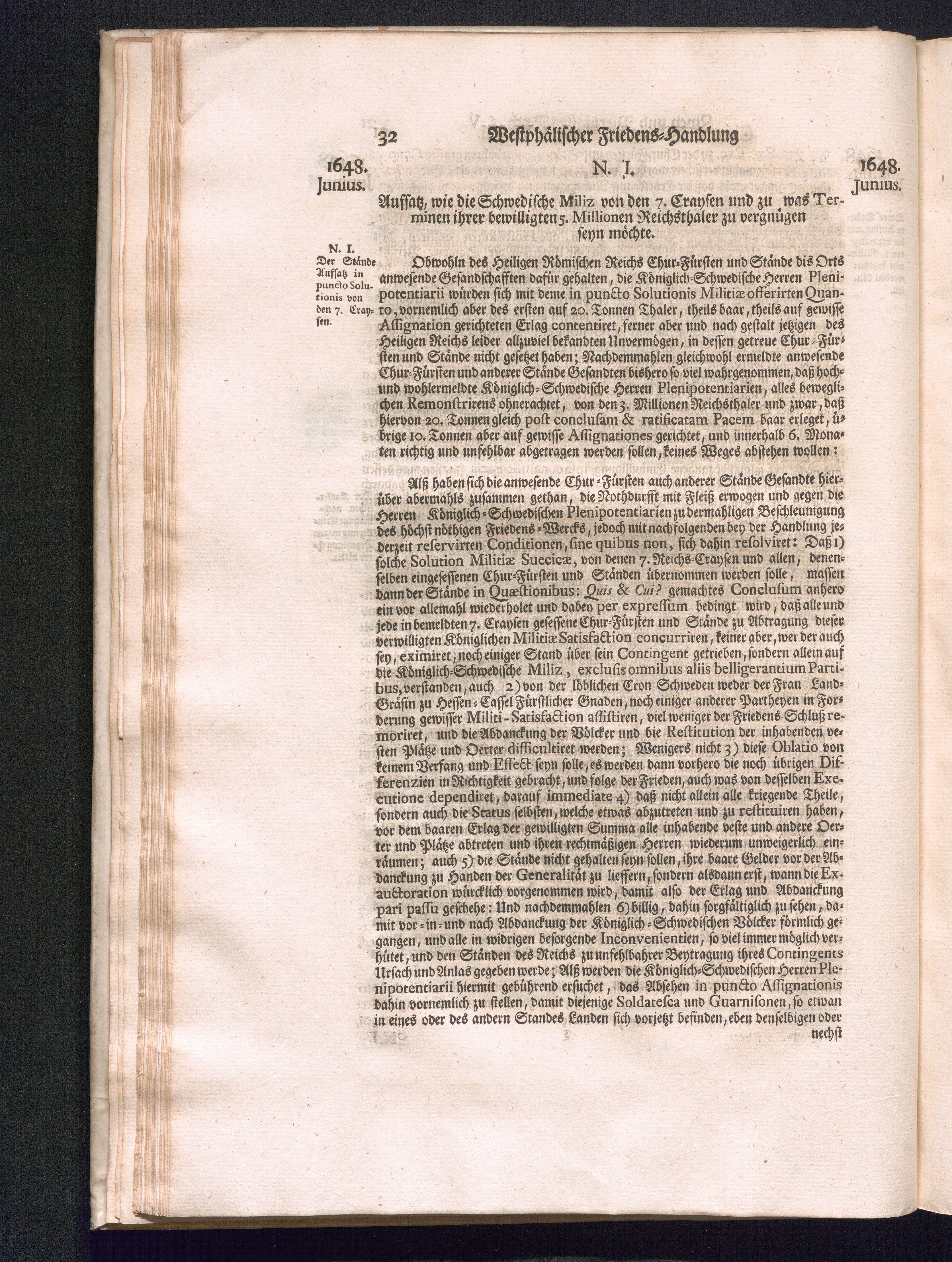 Sechster Theil (1736) Worinnen enthalten ist, was vom Monath Junio des Jahrs 1648. biß zu dem, im Jahr 1649. völlig erfolgten Schluß und Ende des Universal-Friedens-Congressus zu Oßnabrück und Münster, gehandelt und geschlossen worden