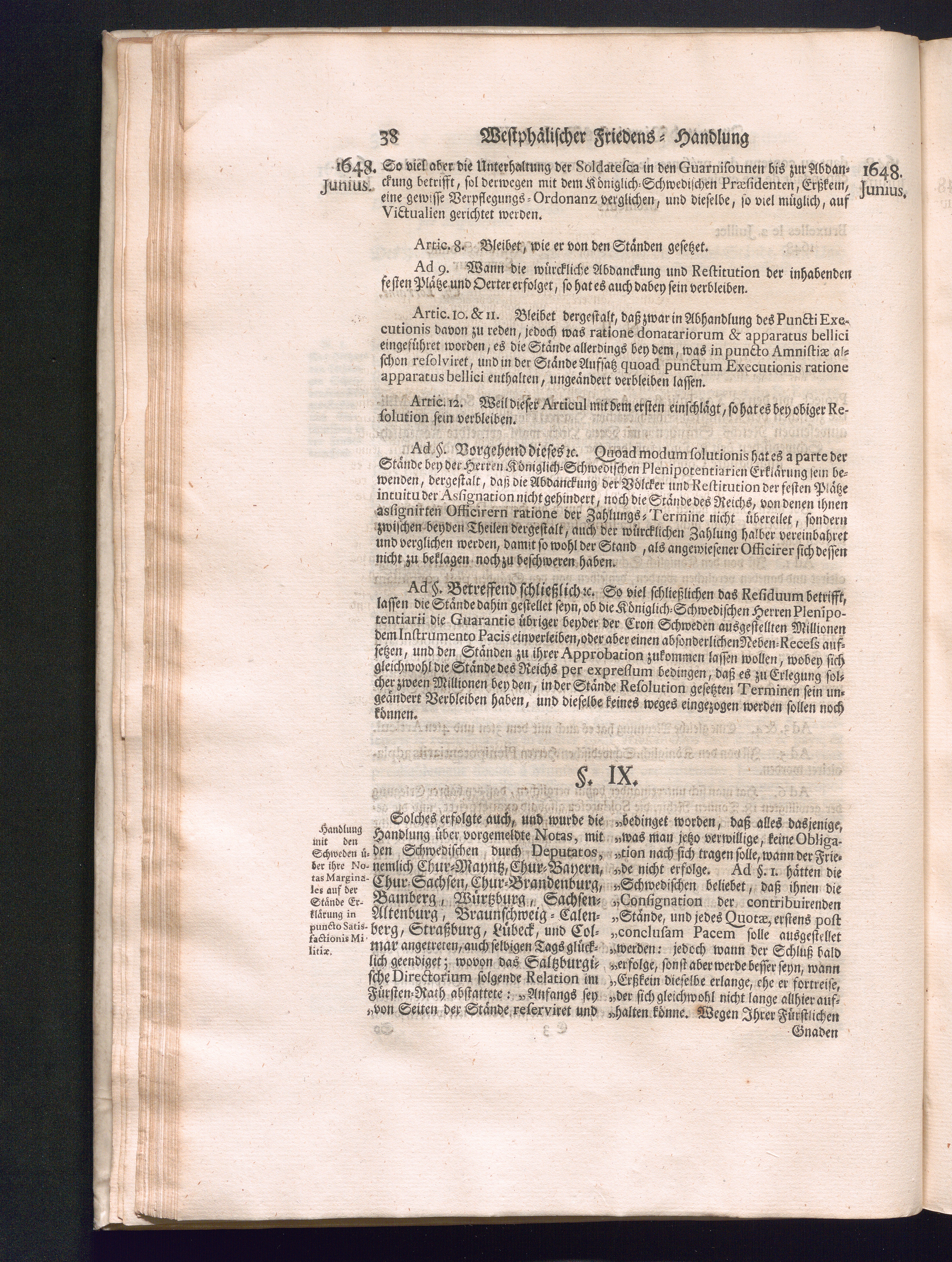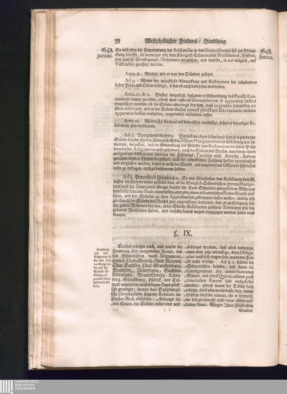 Sechster Theil (1736) Worinnen enthalten ist, was vom Monath Junio des Jahrs 1648. biß zu dem, im Jahr 1649. völlig erfolgten Schluß und Ende des Universal-Friedens-Congressus zu Oßnabrück und Münster, gehandelt und geschlossen worden