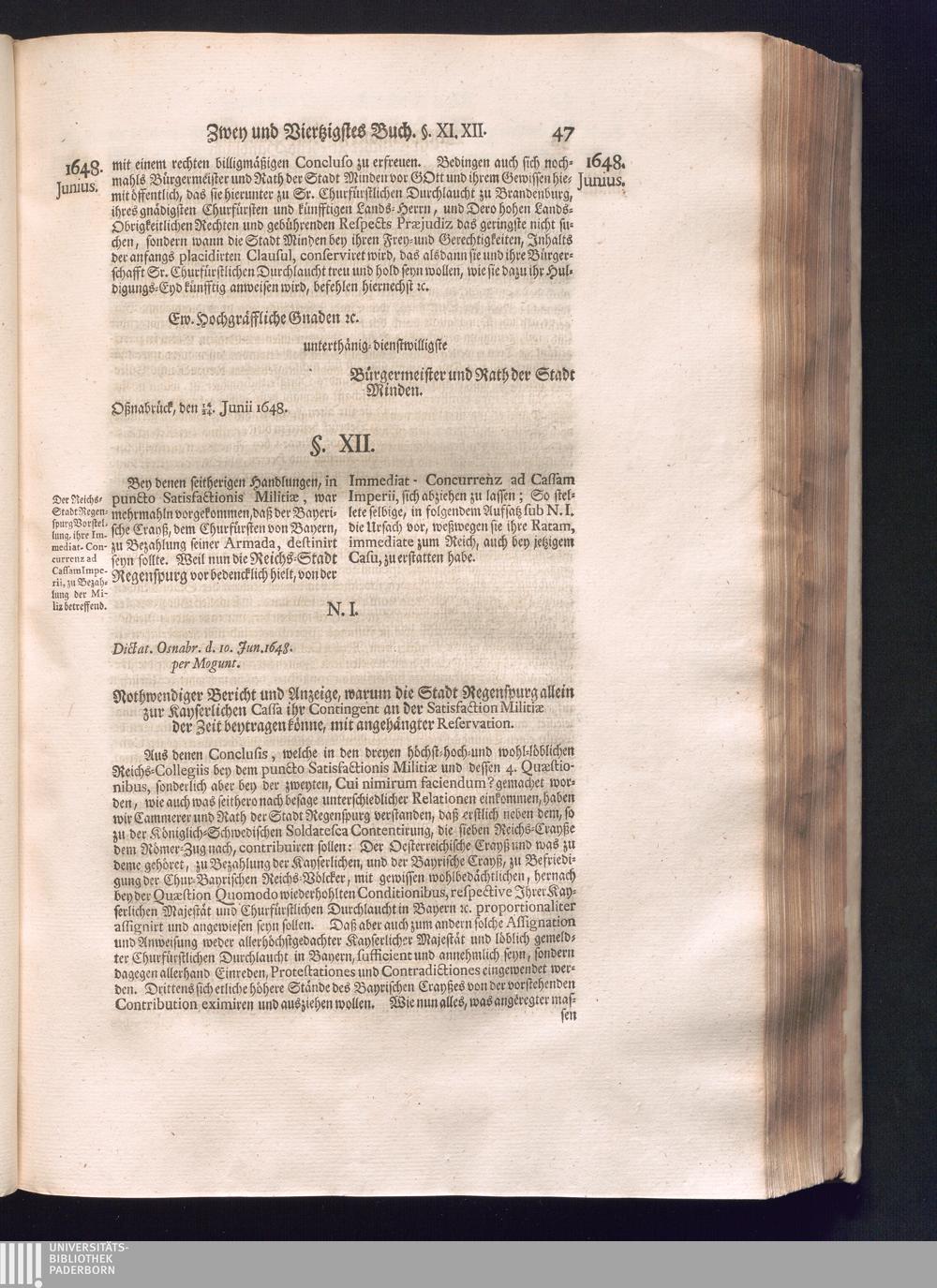 Sechster Theil (1736) Worinnen enthalten ist, was vom Monath Junio des Jahrs 1648. biß zu dem, im Jahr 1649. völlig erfolgten Schluß und Ende des Universal-Friedens-Congressus zu Oßnabrück und Münster, gehandelt und geschlossen worden