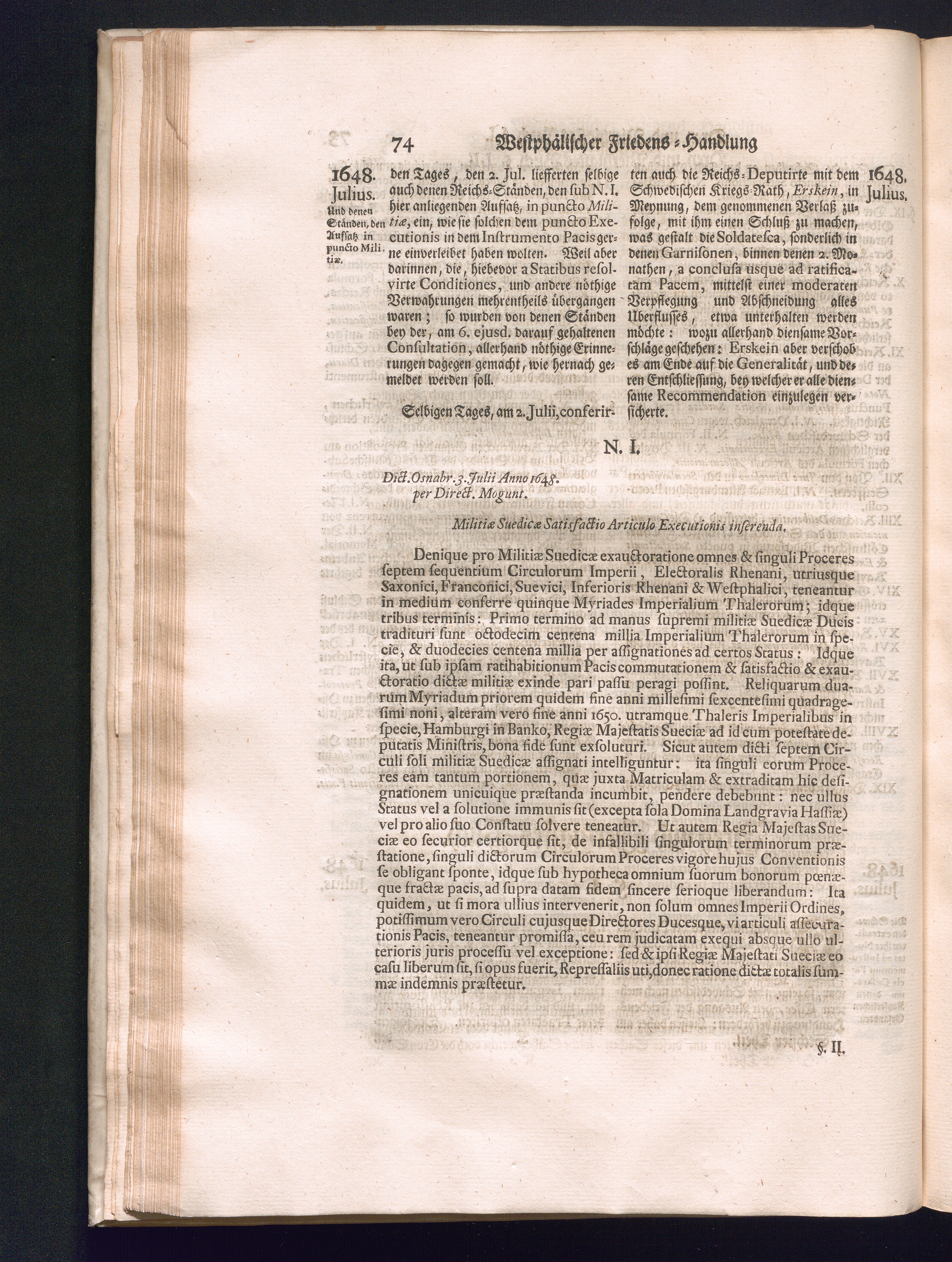 Sechster Theil (1736) Worinnen enthalten ist, was vom Monath Junio des Jahrs 1648. biß zu dem, im Jahr 1649. völlig erfolgten Schluß und Ende des Universal-Friedens-Congressus zu Oßnabrück und Münster, gehandelt und geschlossen worden