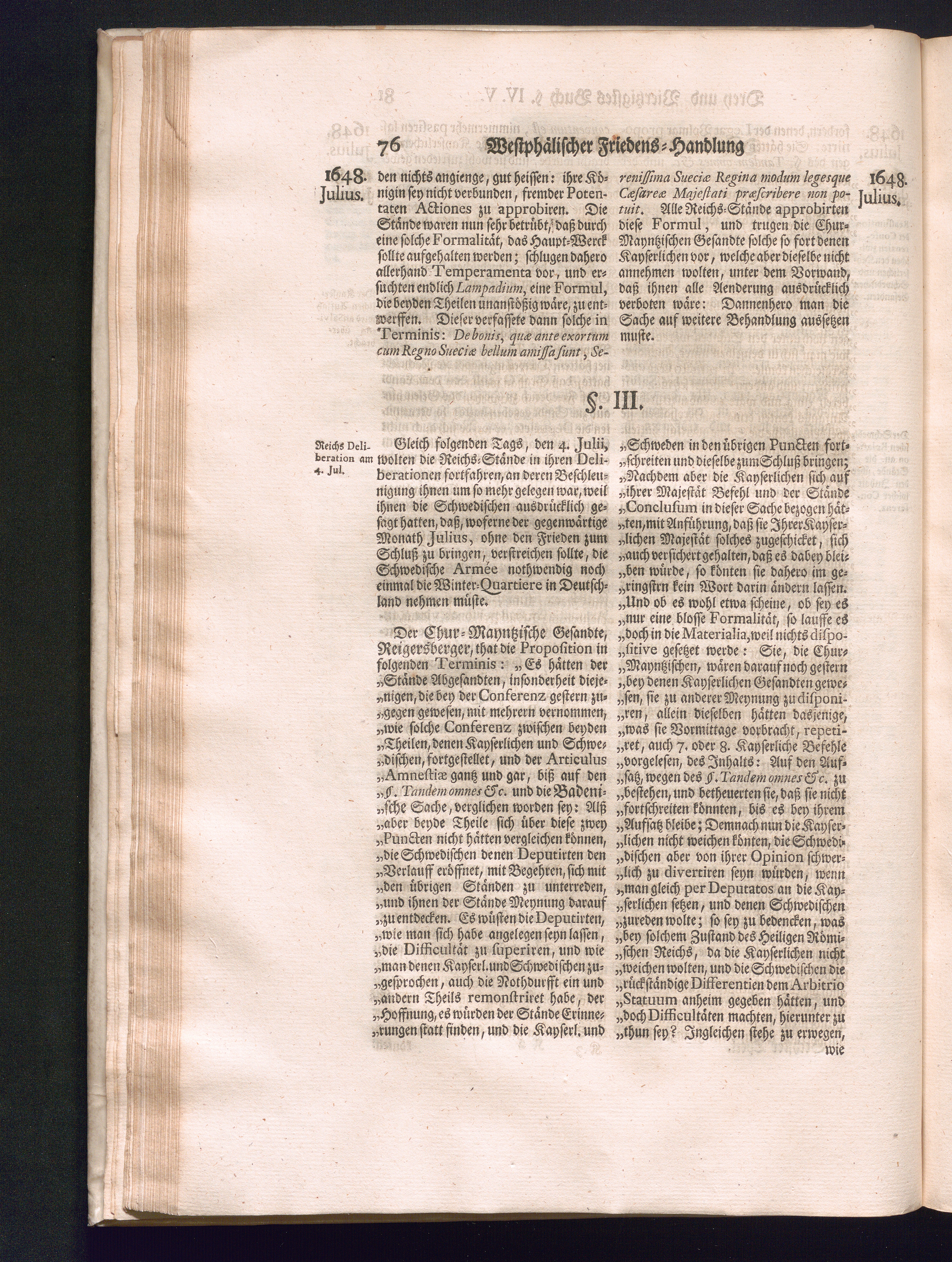 Sechster Theil (1736) Worinnen enthalten ist, was vom Monath Junio des Jahrs 1648. biß zu dem, im Jahr 1649. völlig erfolgten Schluß und Ende des Universal-Friedens-Congressus zu Oßnabrück und Münster, gehandelt und geschlossen worden