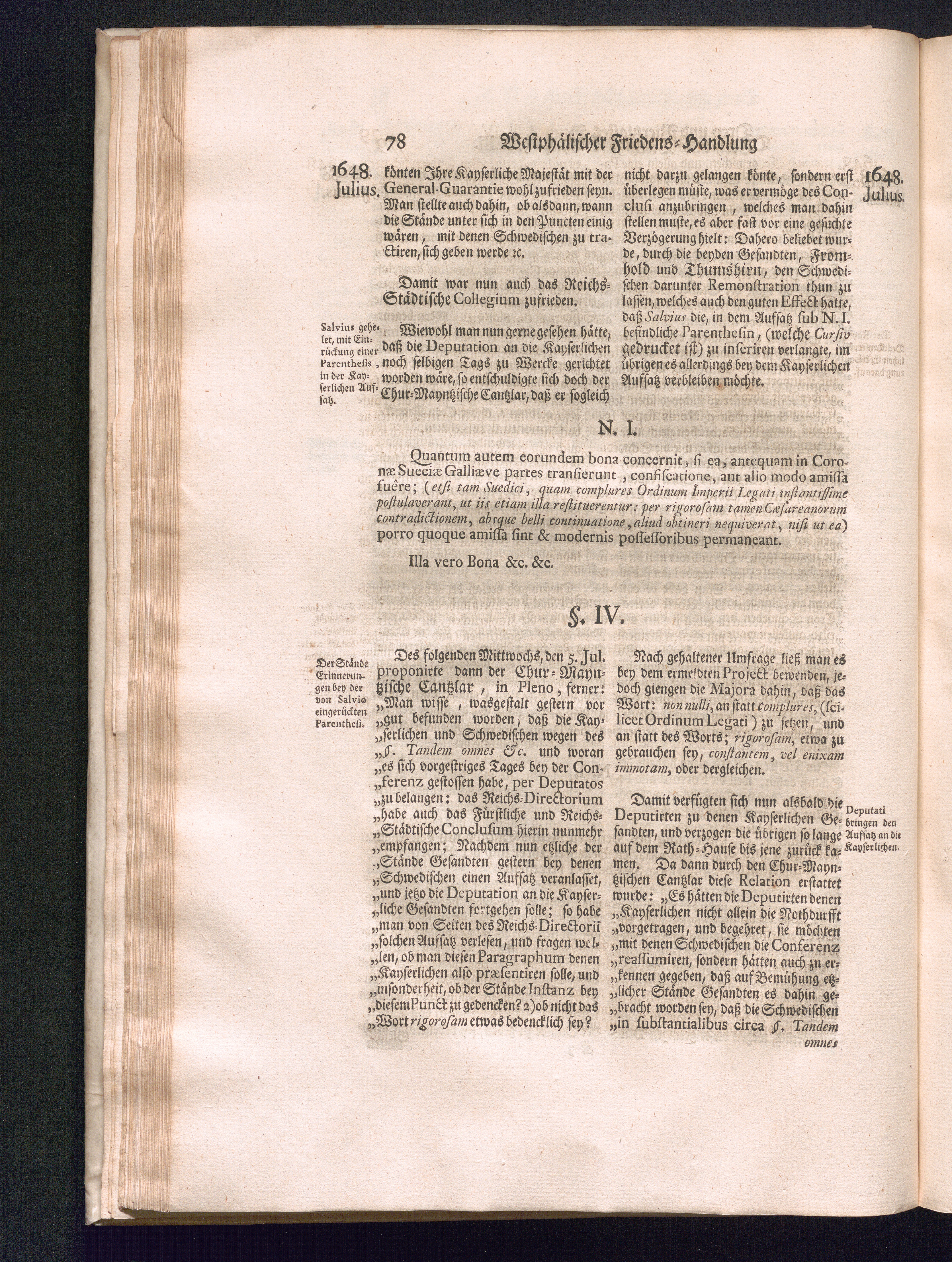 Sechster Theil (1736) Worinnen enthalten ist, was vom Monath Junio des Jahrs 1648. biß zu dem, im Jahr 1649. völlig erfolgten Schluß und Ende des Universal-Friedens-Congressus zu Oßnabrück und Münster, gehandelt und geschlossen worden