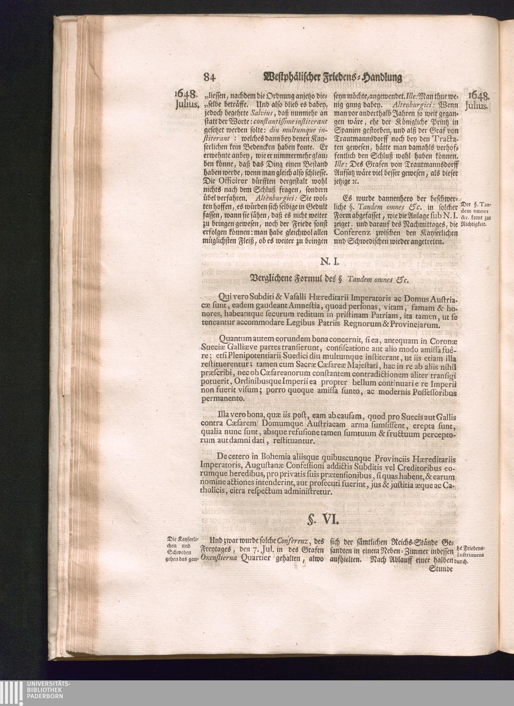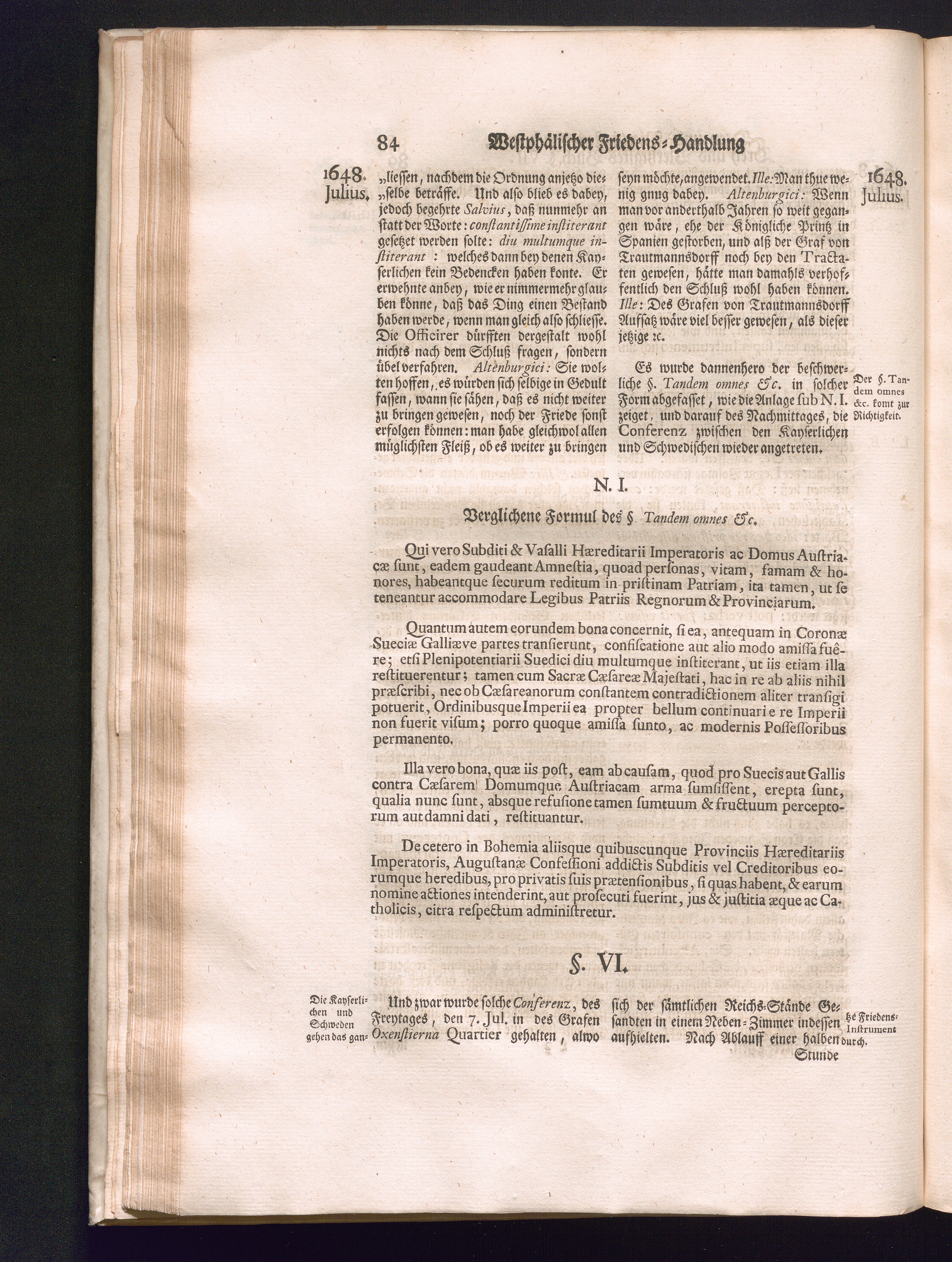 Sechster Theil (1736) Worinnen enthalten ist, was vom Monath Junio des Jahrs 1648. biß zu dem, im Jahr 1649. völlig erfolgten Schluß und Ende des Universal-Friedens-Congressus zu Oßnabrück und Münster, gehandelt und geschlossen worden