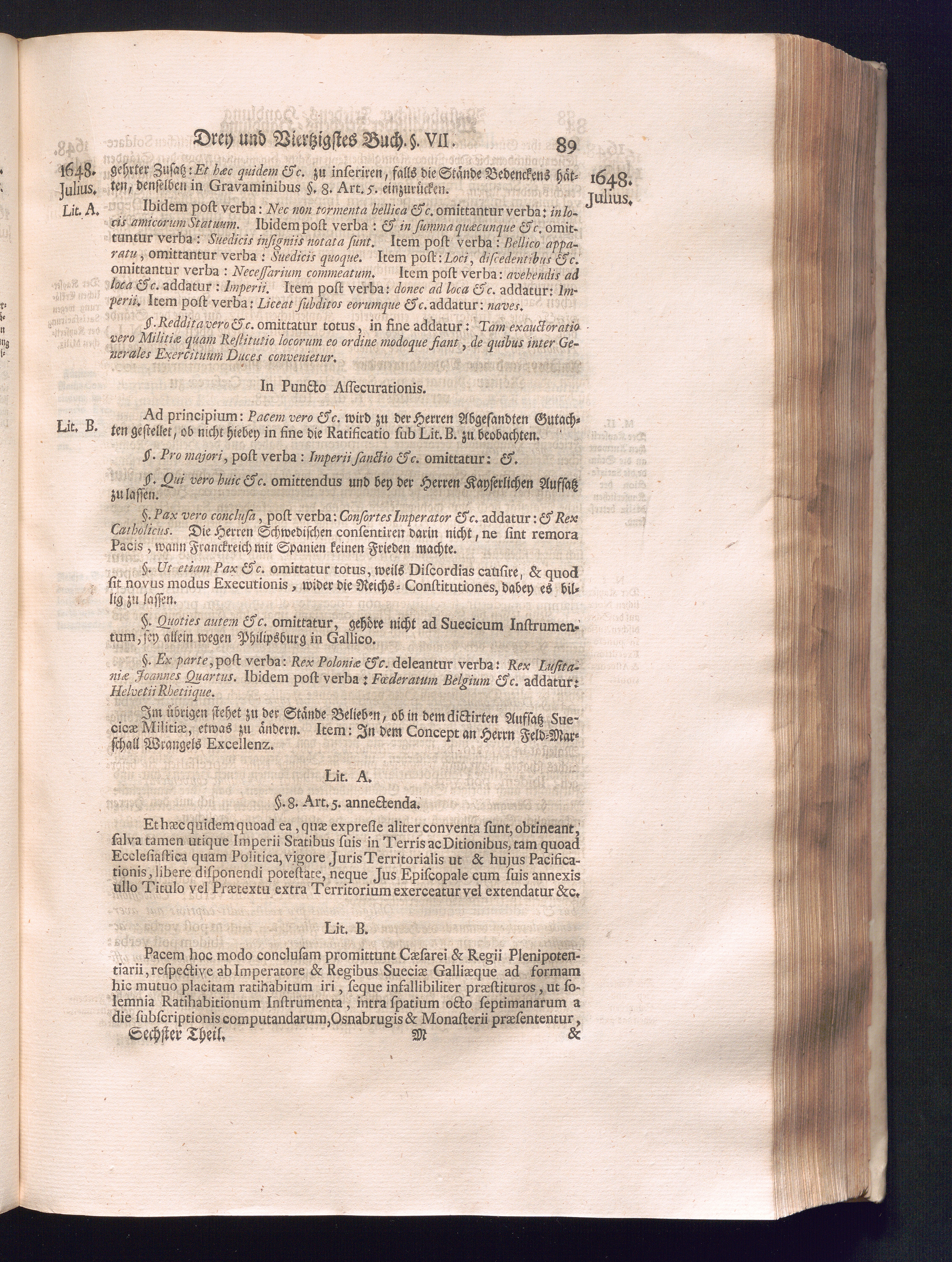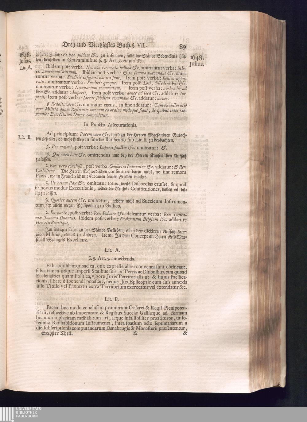 Sechster Theil (1736) Worinnen enthalten ist, was vom Monath Junio des Jahrs 1648. biß zu dem, im Jahr 1649. völlig erfolgten Schluß und Ende des Universal-Friedens-Congressus zu Oßnabrück und Münster, gehandelt und geschlossen worden