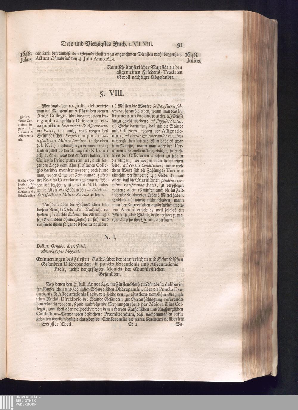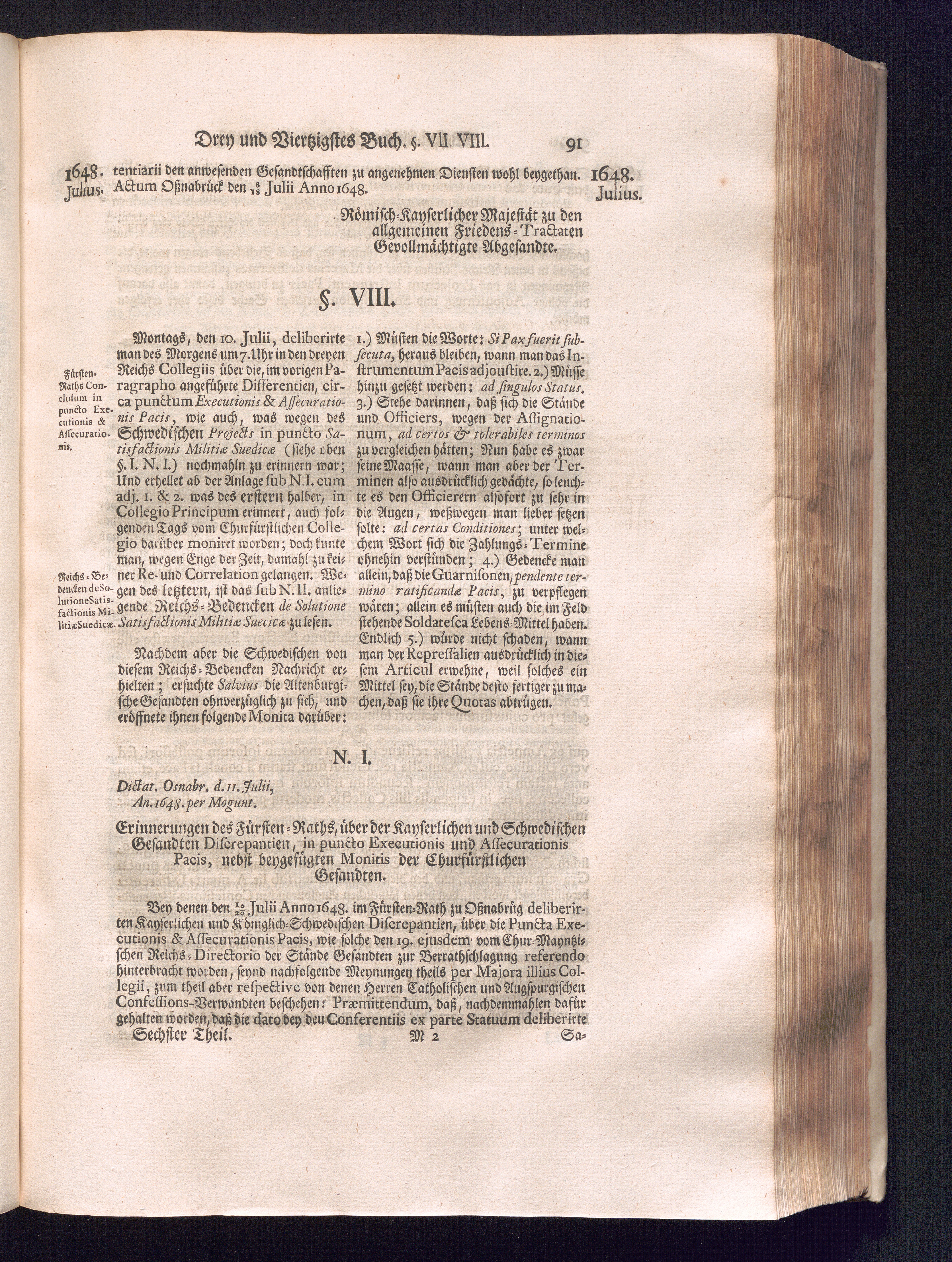 Sechster Theil (1736) Worinnen enthalten ist, was vom Monath Junio des Jahrs 1648. biß zu dem, im Jahr 1649. völlig erfolgten Schluß und Ende des Universal-Friedens-Congressus zu Oßnabrück und Münster, gehandelt und geschlossen worden