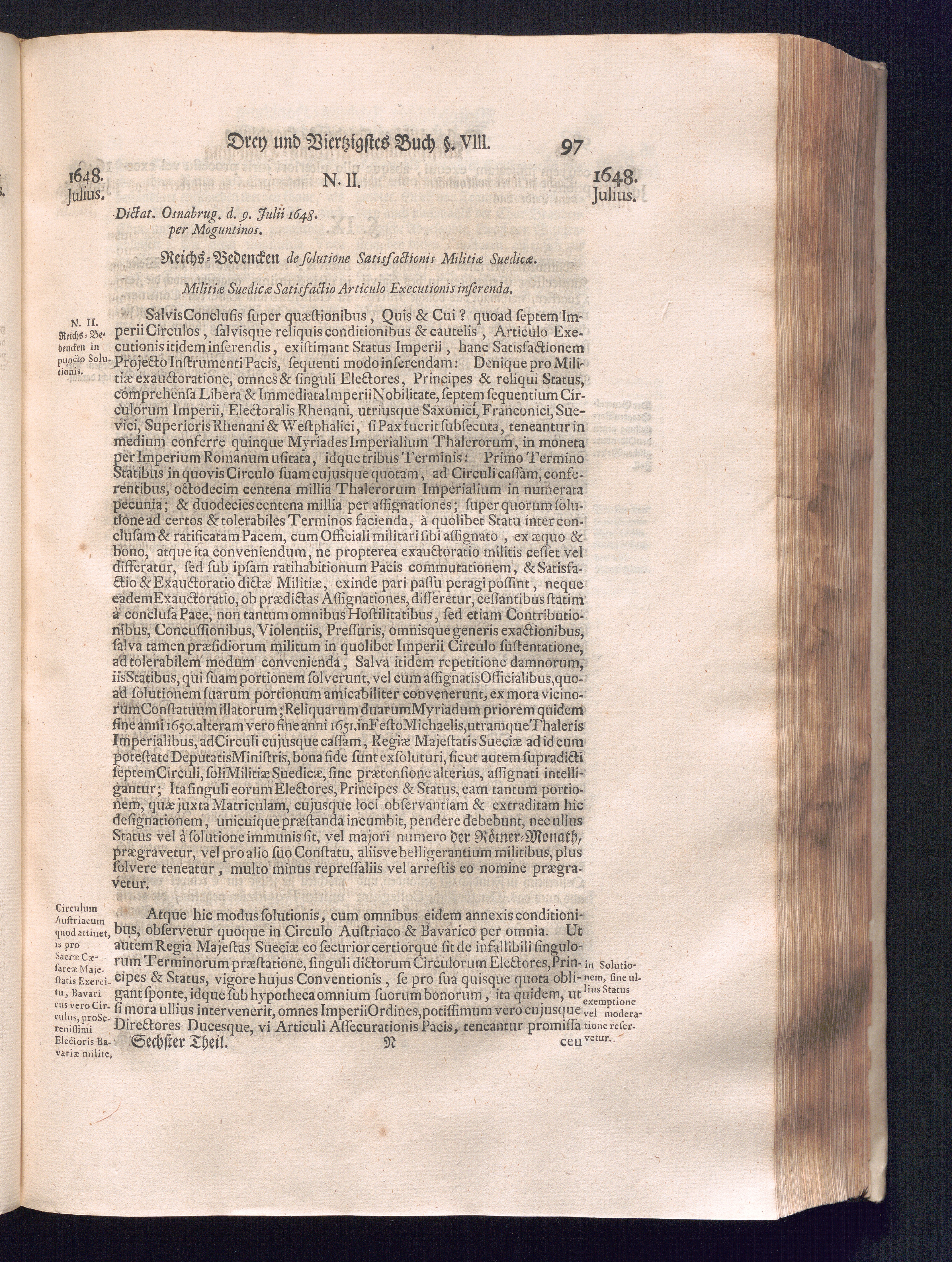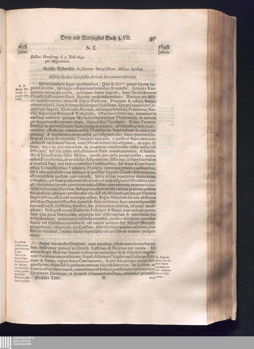 Sechster Theil (1736) Worinnen enthalten ist, was vom Monath Junio des Jahrs 1648. biß zu dem, im Jahr 1649. völlig erfolgten Schluß und Ende des Universal-Friedens-Congressus zu Oßnabrück und Münster, gehandelt und geschlossen worden