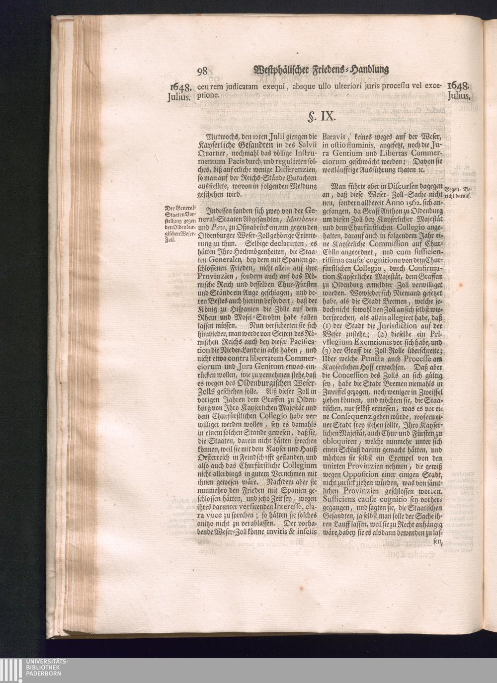 Sechster Theil (1736) Worinnen enthalten ist, was vom Monath Junio des Jahrs 1648. biß zu dem, im Jahr 1649. völlig erfolgten Schluß und Ende des Universal-Friedens-Congressus zu Oßnabrück und Münster, gehandelt und geschlossen worden