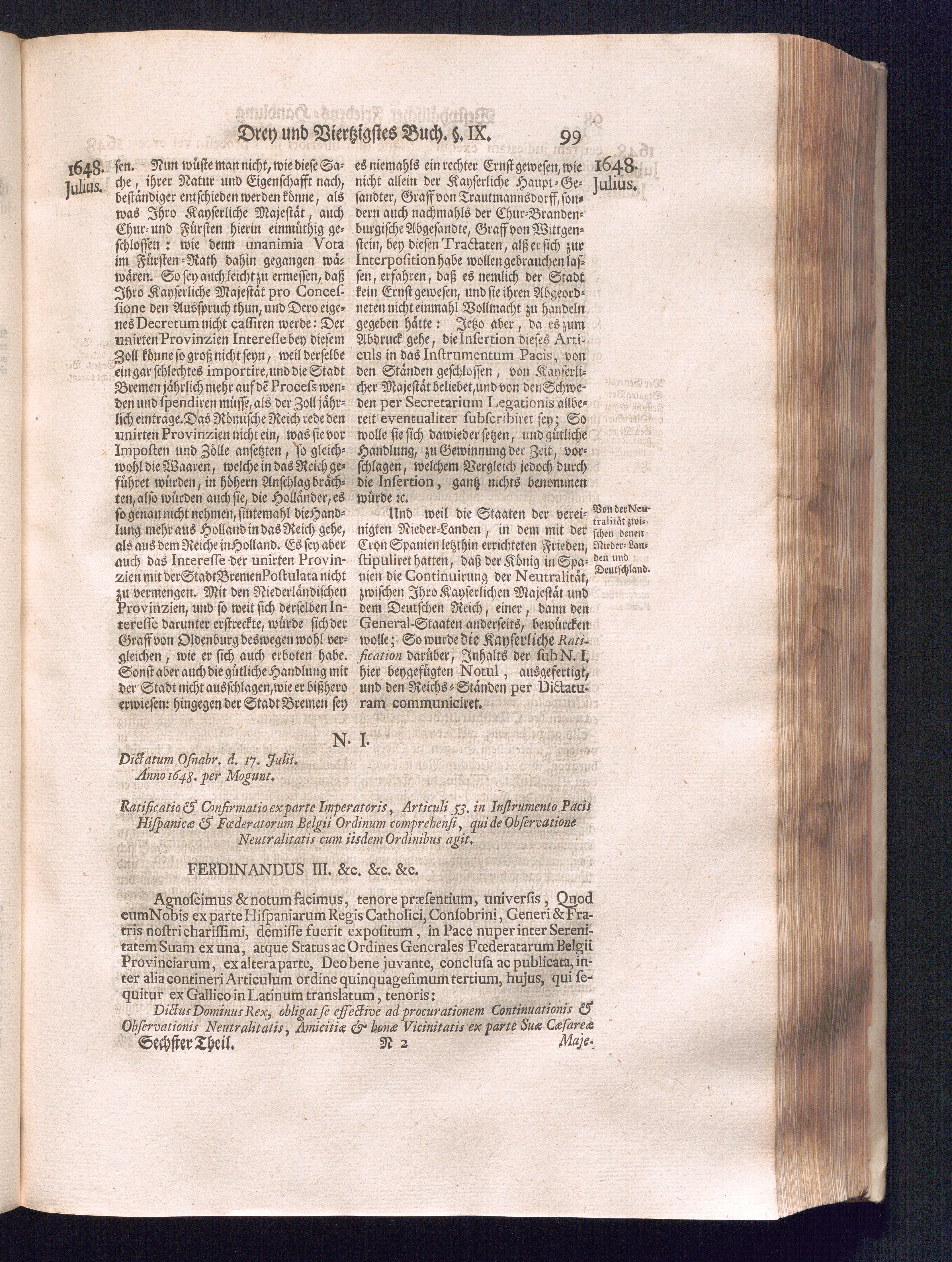 Sechster Theil (1736) Worinnen enthalten ist, was vom Monath Junio des Jahrs 1648. biß zu dem, im Jahr 1649. völlig erfolgten Schluß und Ende des Universal-Friedens-Congressus zu Oßnabrück und Münster, gehandelt und geschlossen worden