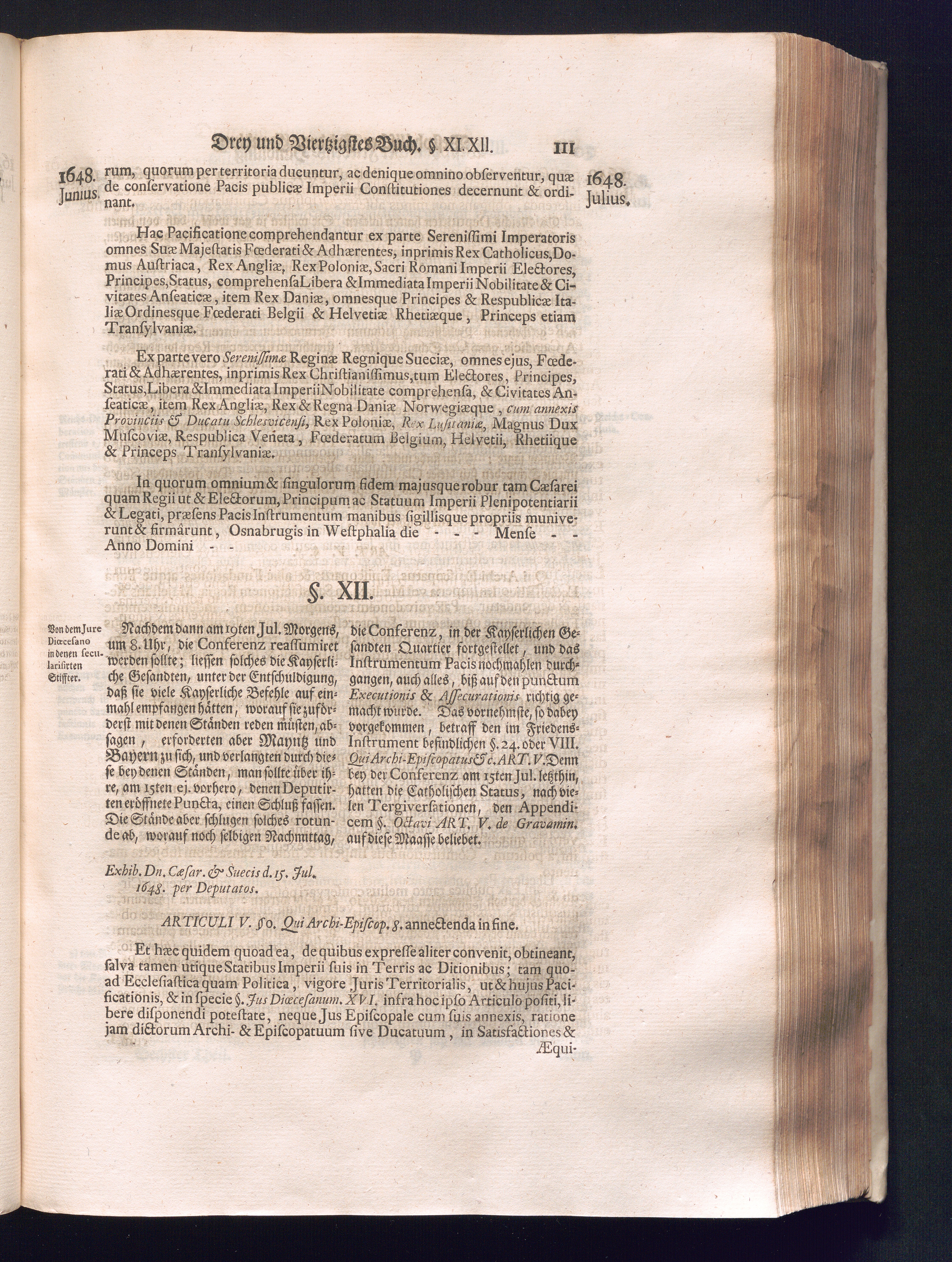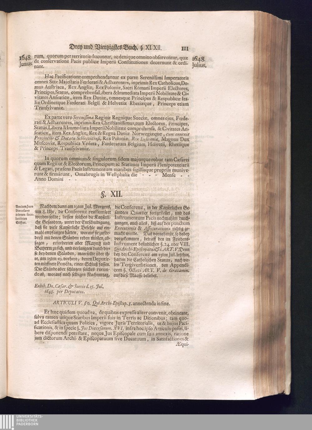 Sechster Theil (1736) Worinnen enthalten ist, was vom Monath Junio des Jahrs 1648. biß zu dem, im Jahr 1649. völlig erfolgten Schluß und Ende des Universal-Friedens-Congressus zu Oßnabrück und Münster, gehandelt und geschlossen worden