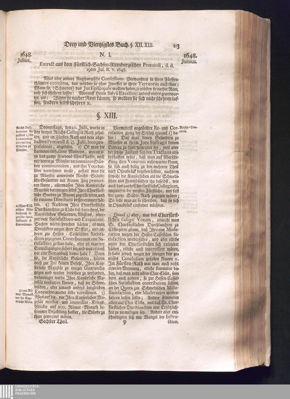 Sechster Theil (1736) Worinnen enthalten ist, was vom Monath Junio des Jahrs 1648. biß zu dem, im Jahr 1649. völlig erfolgten Schluß und Ende des Universal-Friedens-Congressus zu Oßnabrück und Münster, gehandelt und geschlossen worden