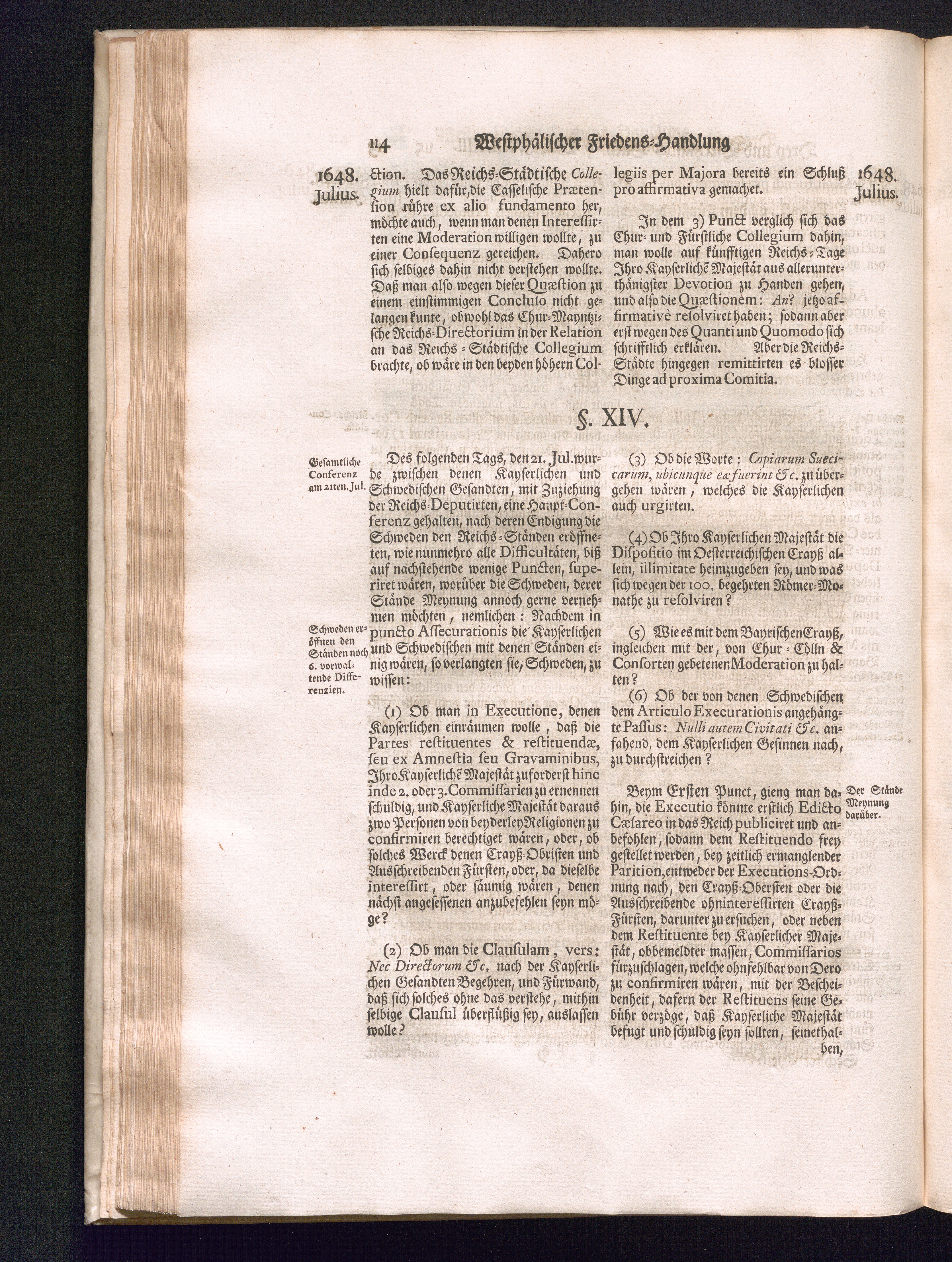 Sechster Theil (1736) Worinnen enthalten ist, was vom Monath Junio des Jahrs 1648. biß zu dem, im Jahr 1649. völlig erfolgten Schluß und Ende des Universal-Friedens-Congressus zu Oßnabrück und Münster, gehandelt und geschlossen worden