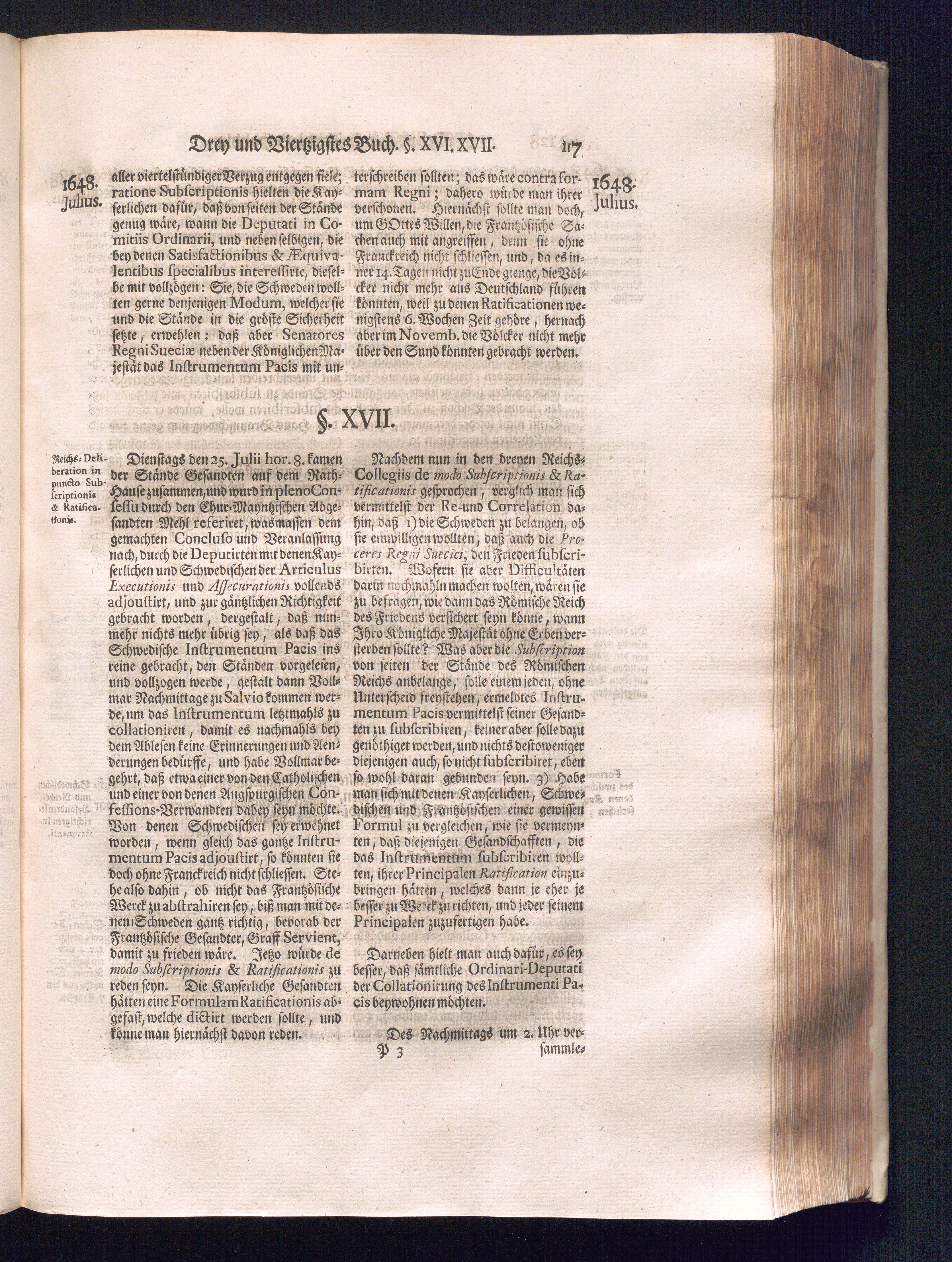 Sechster Theil (1736) Worinnen enthalten ist, was vom Monath Junio des Jahrs 1648. biß zu dem, im Jahr 1649. völlig erfolgten Schluß und Ende des Universal-Friedens-Congressus zu Oßnabrück und Münster, gehandelt und geschlossen worden