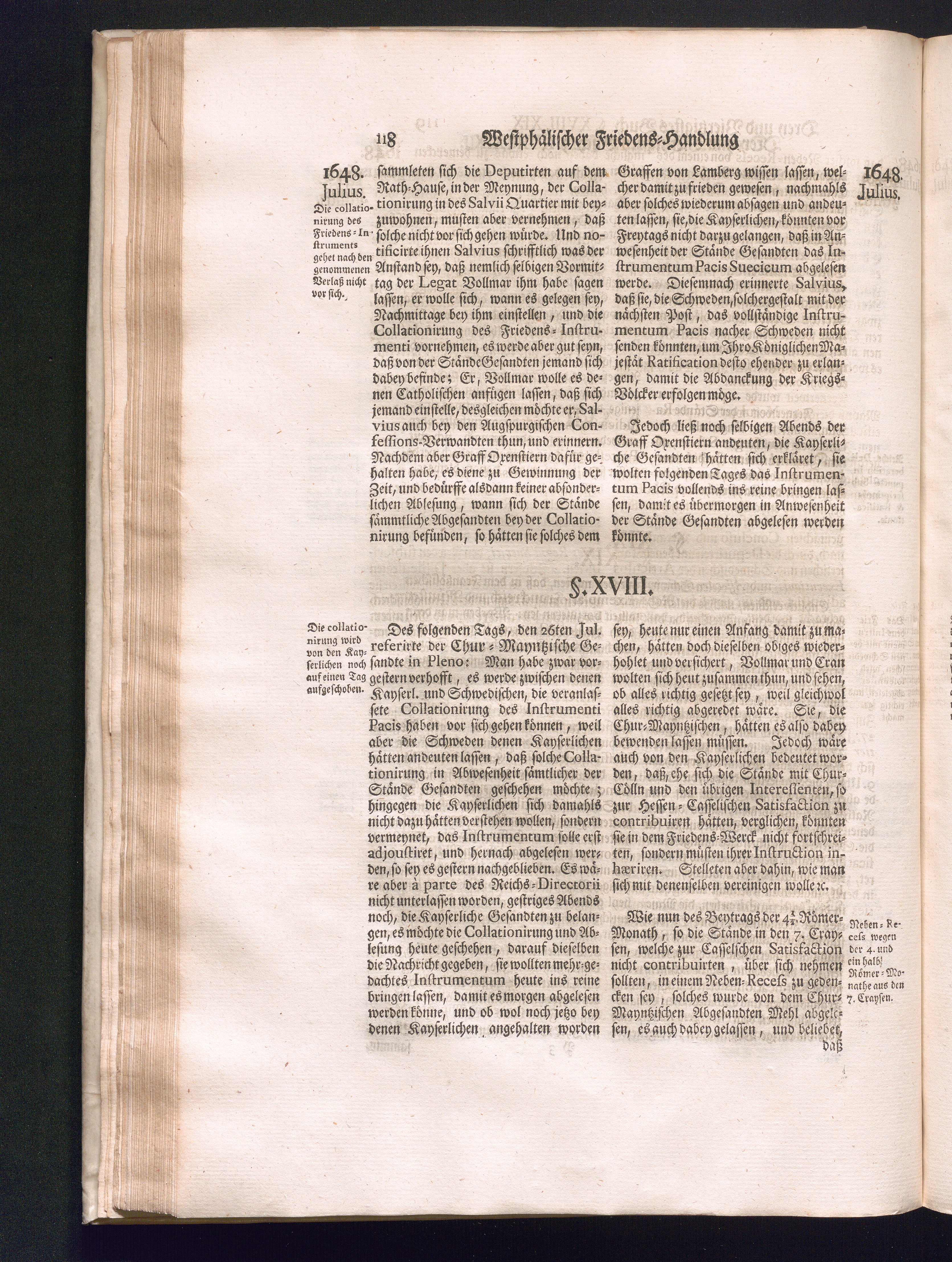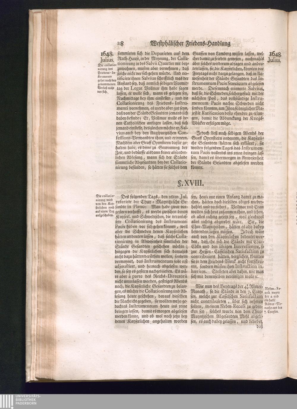 Sechster Theil (1736) Worinnen enthalten ist, was vom Monath Junio des Jahrs 1648. biß zu dem, im Jahr 1649. völlig erfolgten Schluß und Ende des Universal-Friedens-Congressus zu Oßnabrück und Münster, gehandelt und geschlossen worden