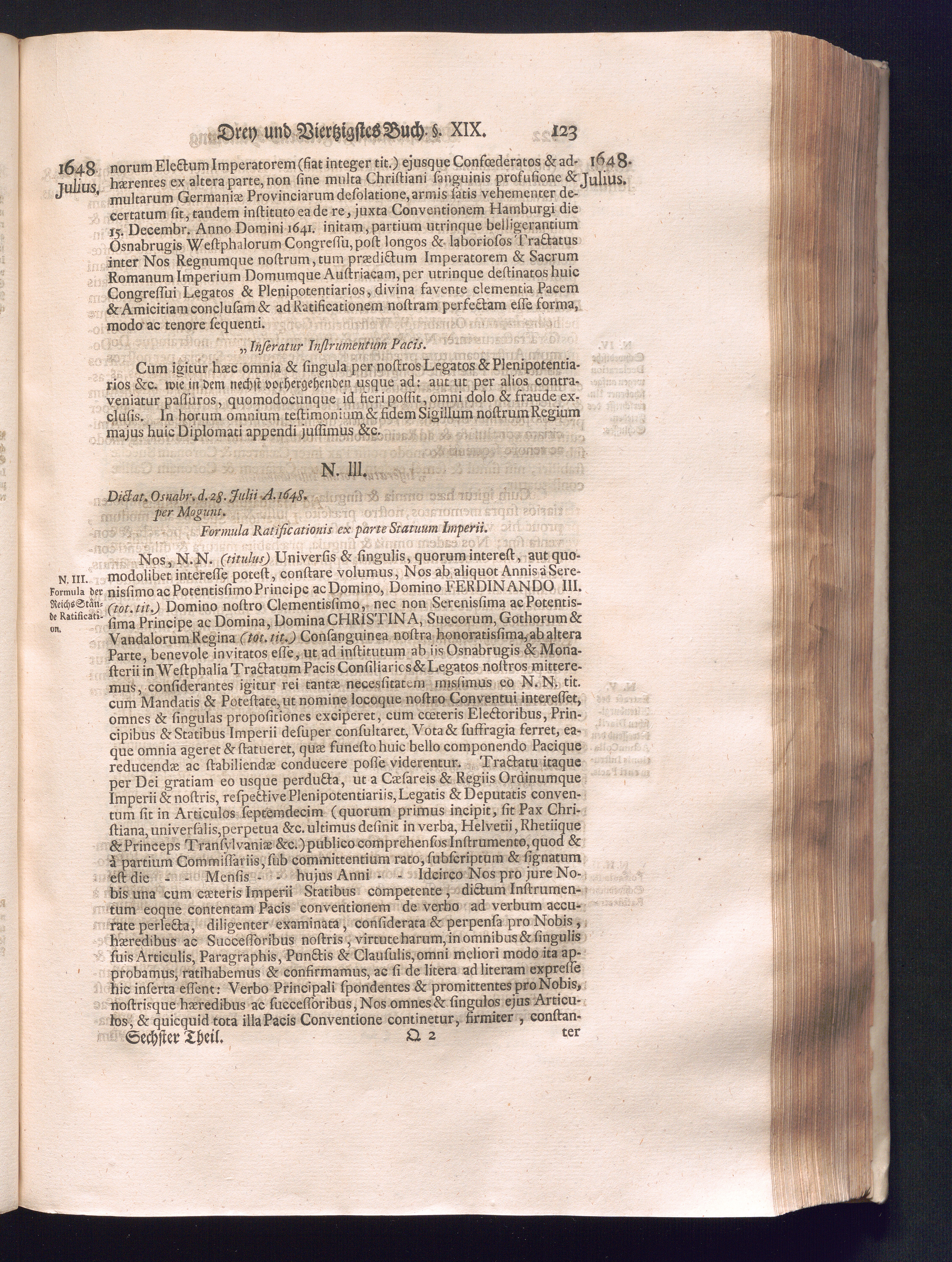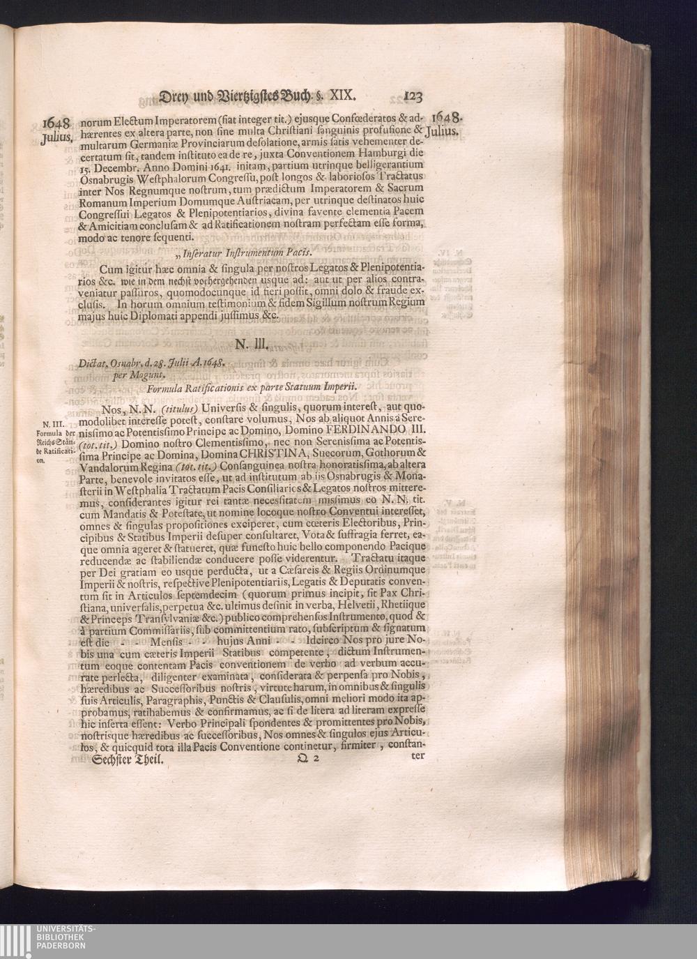 Sechster Theil (1736) Worinnen enthalten ist, was vom Monath Junio des Jahrs 1648. biß zu dem, im Jahr 1649. völlig erfolgten Schluß und Ende des Universal-Friedens-Congressus zu Oßnabrück und Münster, gehandelt und geschlossen worden