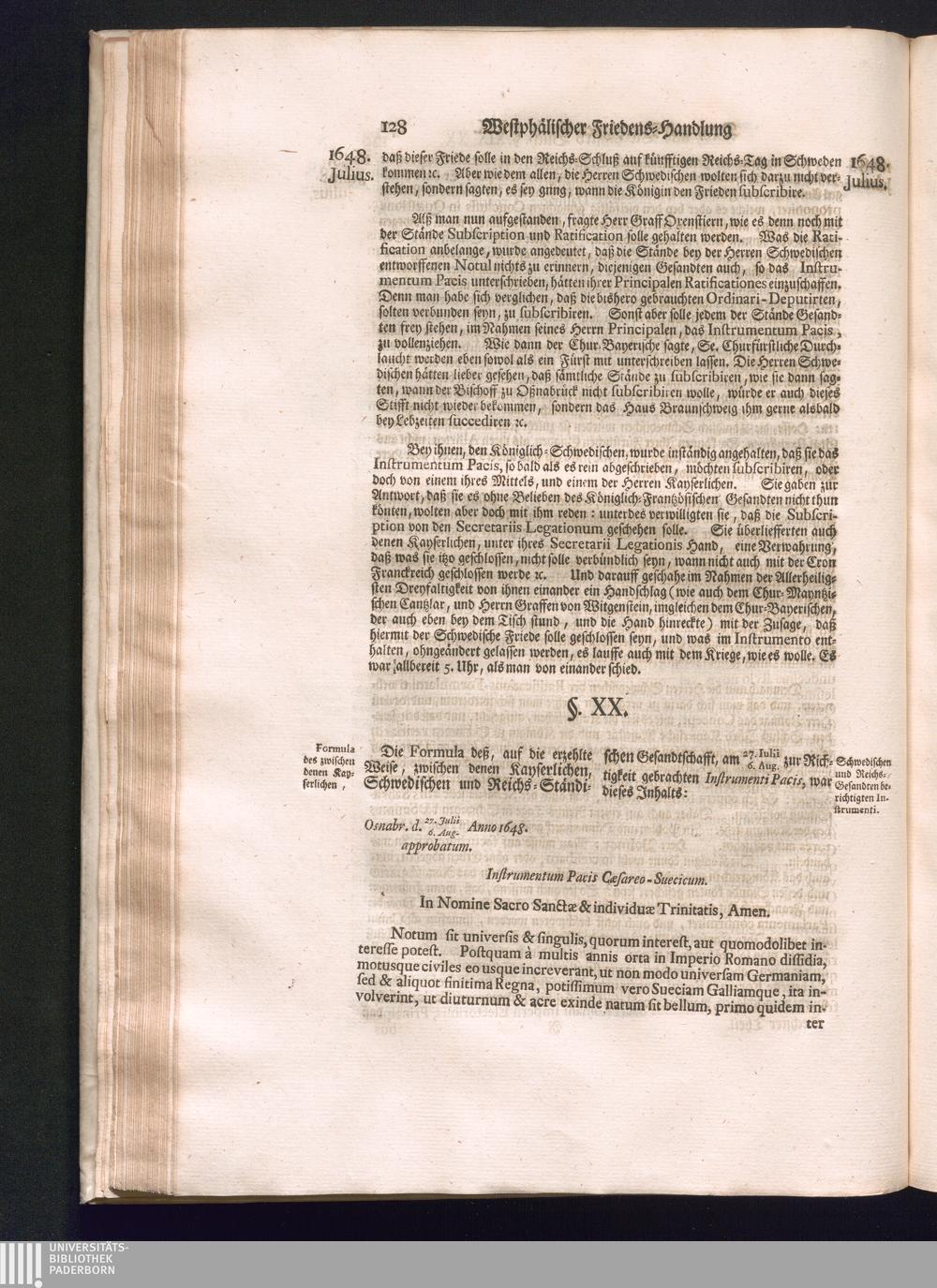 Sechster Theil (1736) Worinnen enthalten ist, was vom Monath Junio des Jahrs 1648. biß zu dem, im Jahr 1649. völlig erfolgten Schluß und Ende des Universal-Friedens-Congressus zu Oßnabrück und Münster, gehandelt und geschlossen worden