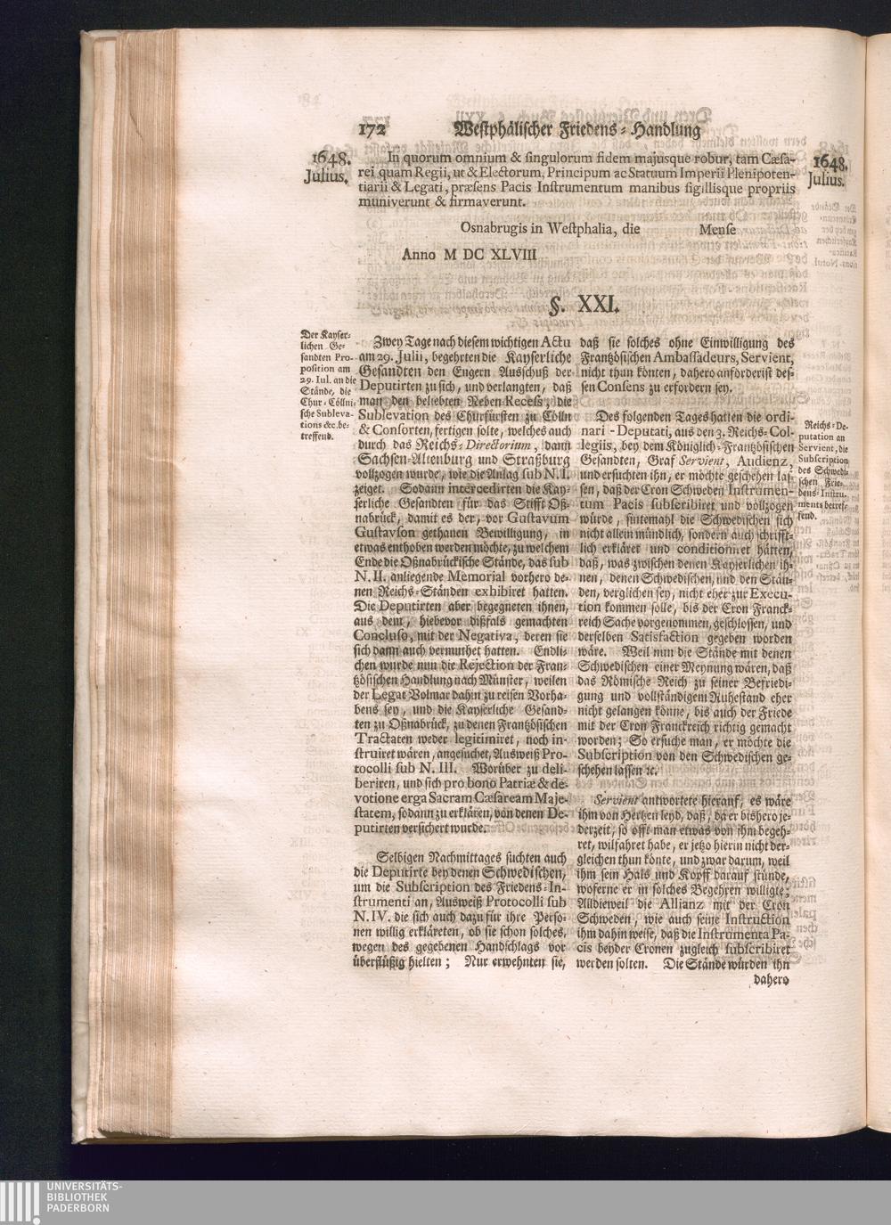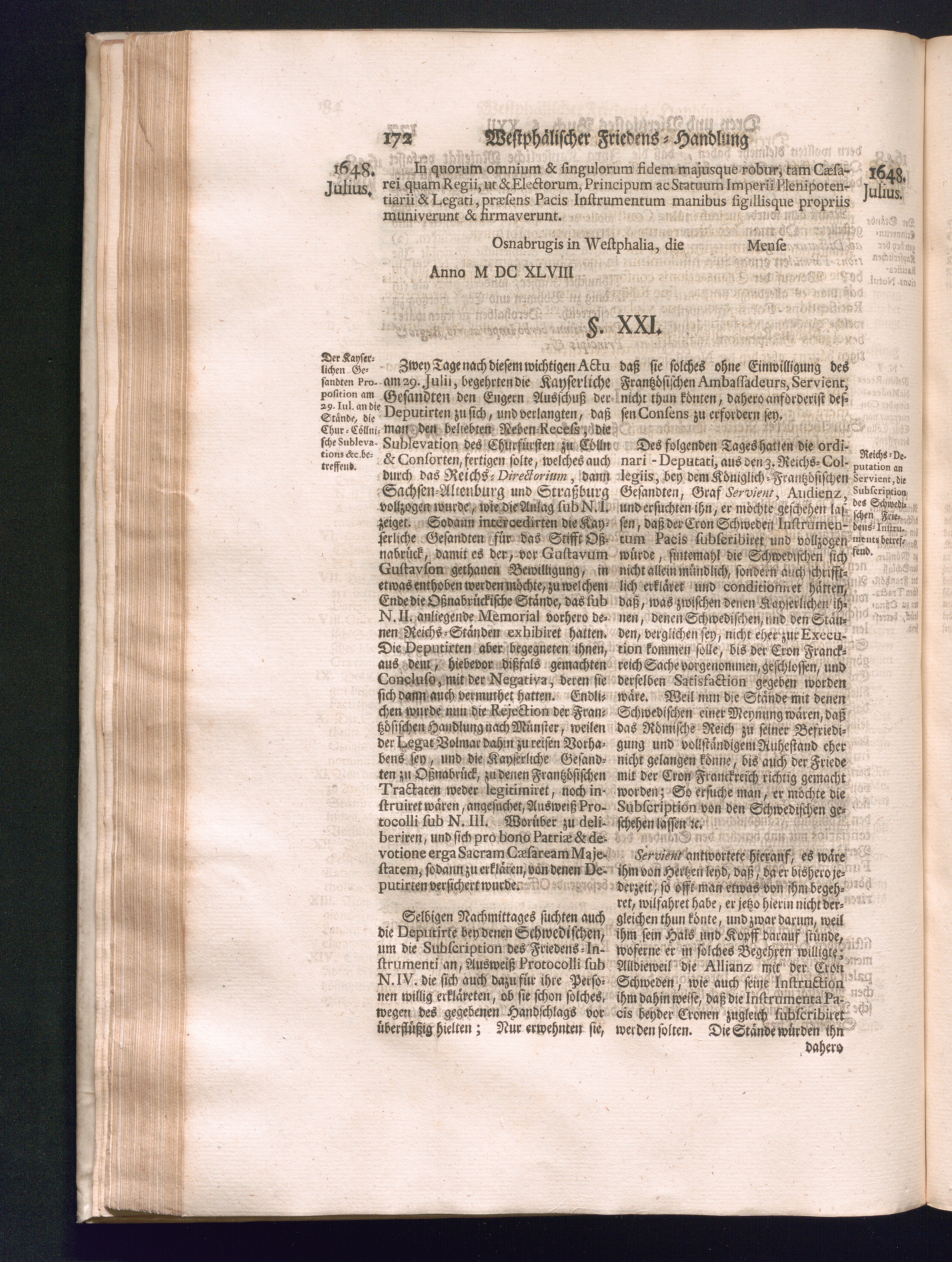Sechster Theil (1736) Worinnen enthalten ist, was vom Monath Junio des Jahrs 1648. biß zu dem, im Jahr 1649. völlig erfolgten Schluß und Ende des Universal-Friedens-Congressus zu Oßnabrück und Münster, gehandelt und geschlossen worden