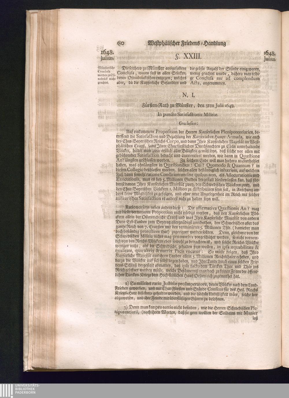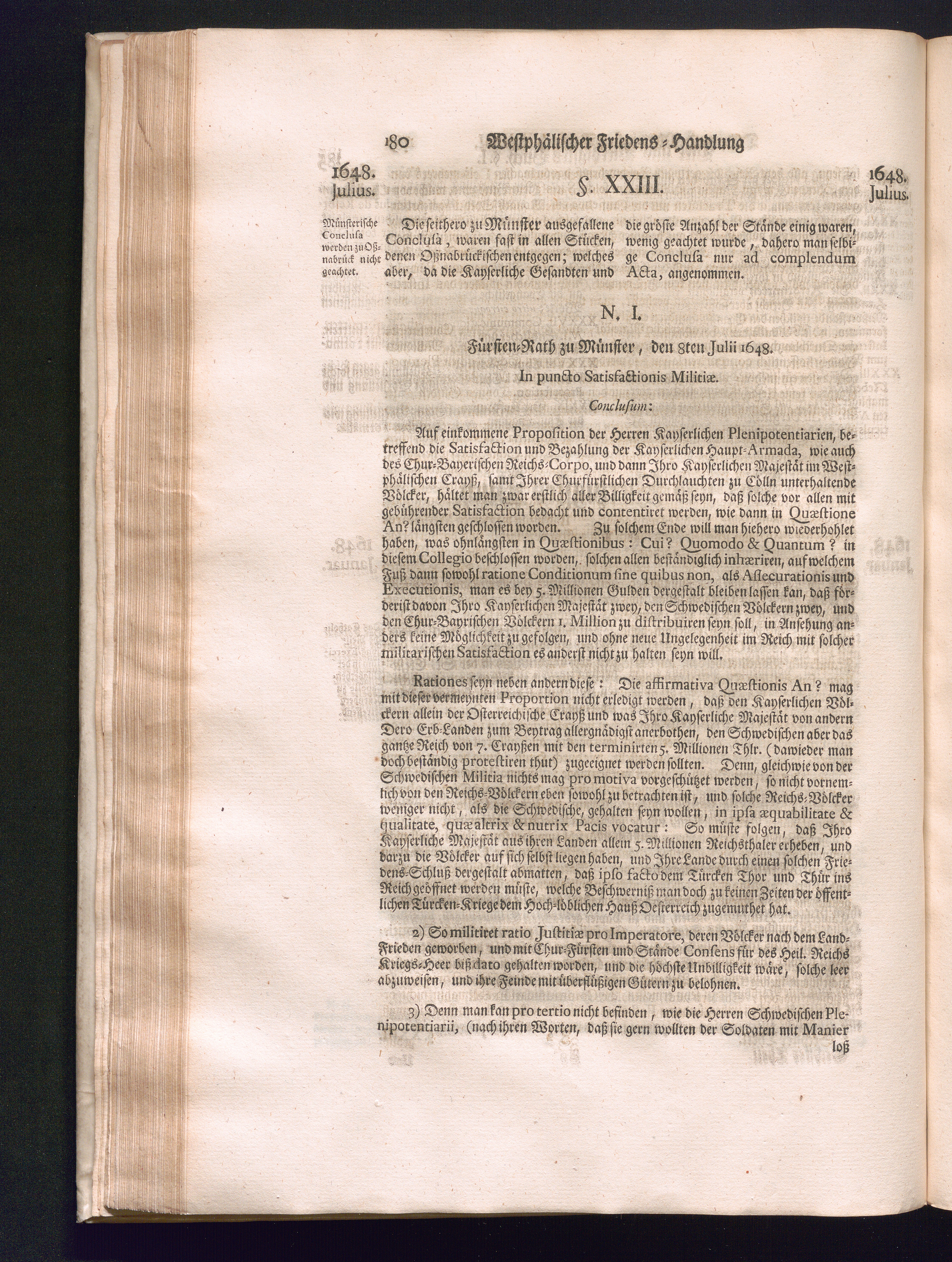 Sechster Theil (1736) Worinnen enthalten ist, was vom Monath Junio des Jahrs 1648. biß zu dem, im Jahr 1649. völlig erfolgten Schluß und Ende des Universal-Friedens-Congressus zu Oßnabrück und Münster, gehandelt und geschlossen worden