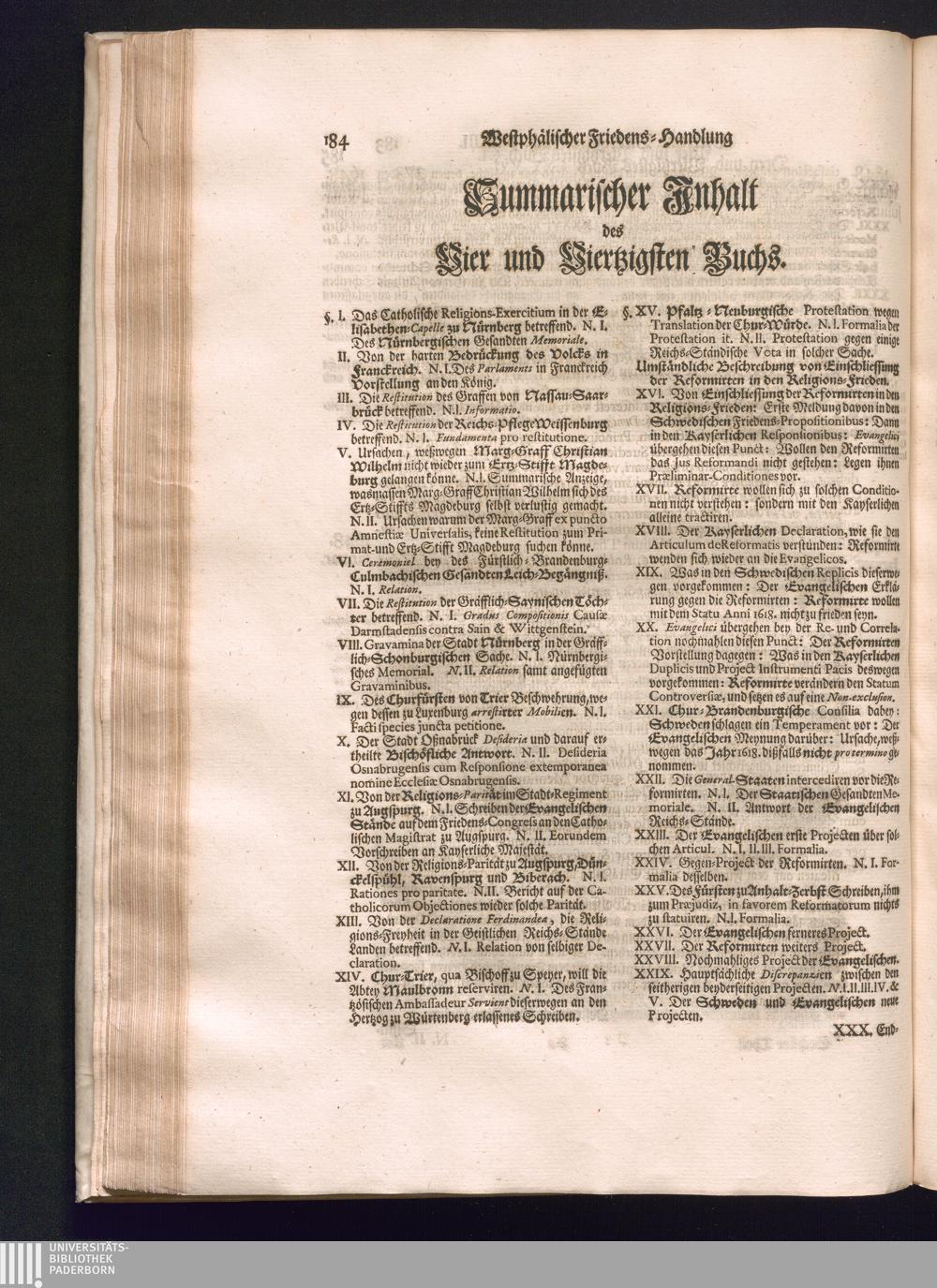 Sechster Theil (1736) Worinnen enthalten ist, was vom Monath Junio des Jahrs 1648. biß zu dem, im Jahr 1649. völlig erfolgten Schluß und Ende des Universal-Friedens-Congressus zu Oßnabrück und Münster, gehandelt und geschlossen worden