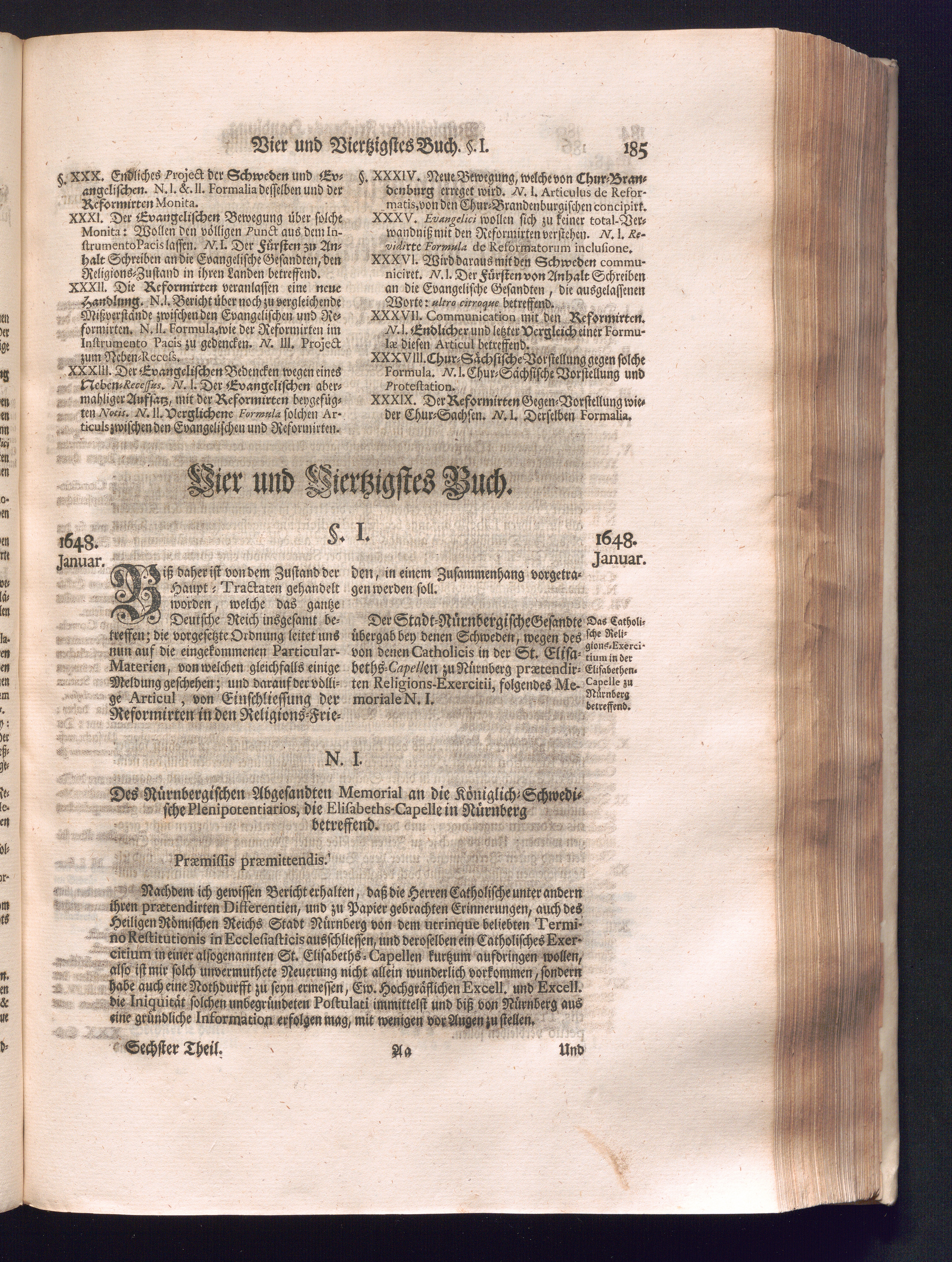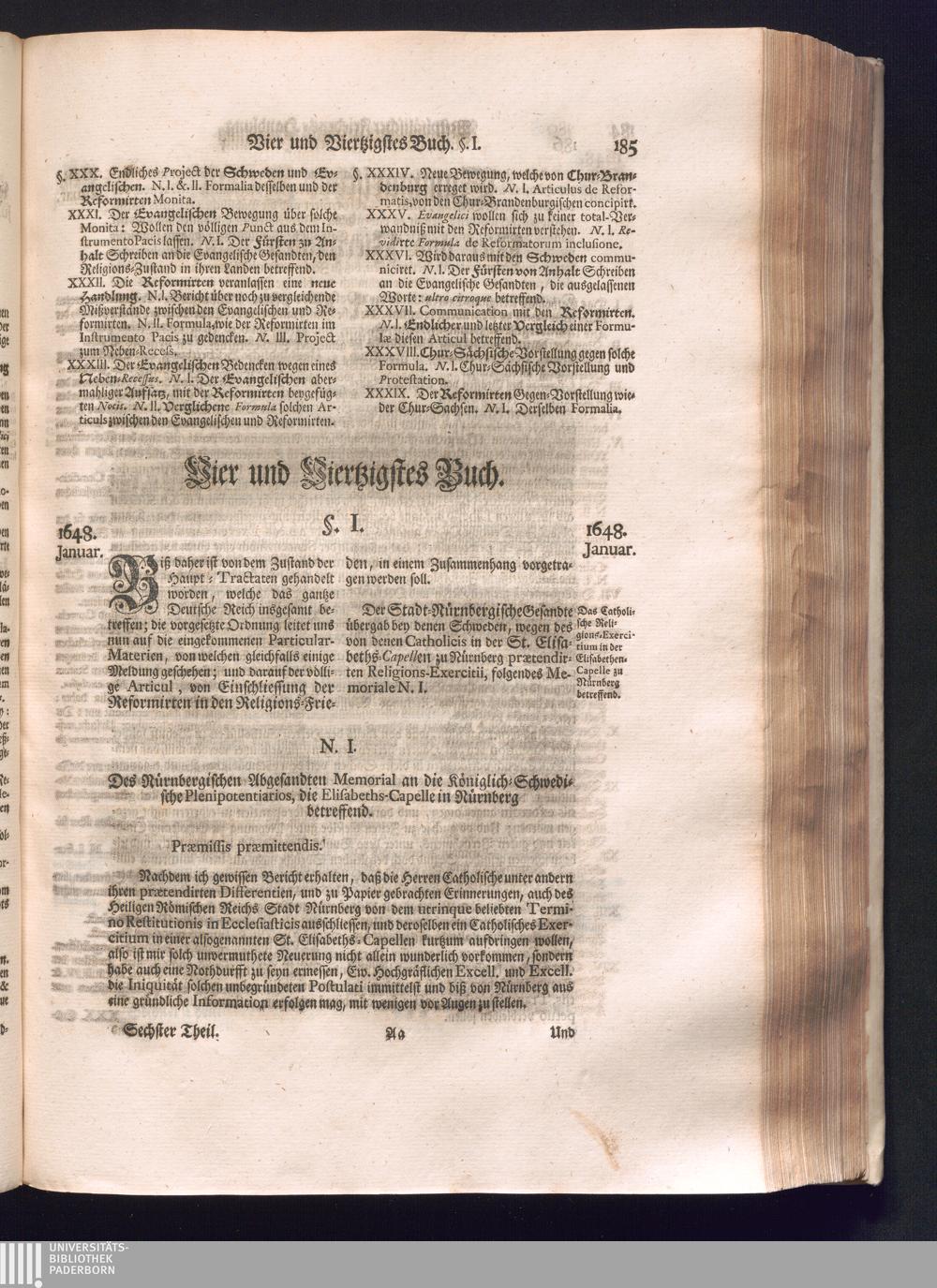 Sechster Theil (1736) Worinnen enthalten ist, was vom Monath Junio des Jahrs 1648. biß zu dem, im Jahr 1649. völlig erfolgten Schluß und Ende des Universal-Friedens-Congressus zu Oßnabrück und Münster, gehandelt und geschlossen worden