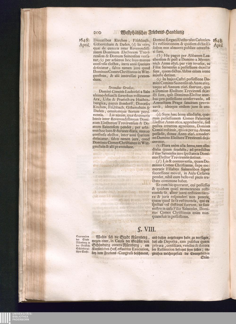 Sechster Theil (1736) Worinnen enthalten ist, was vom Monath Junio des Jahrs 1648. biß zu dem, im Jahr 1649. völlig erfolgten Schluß und Ende des Universal-Friedens-Congressus zu Oßnabrück und Münster, gehandelt und geschlossen worden