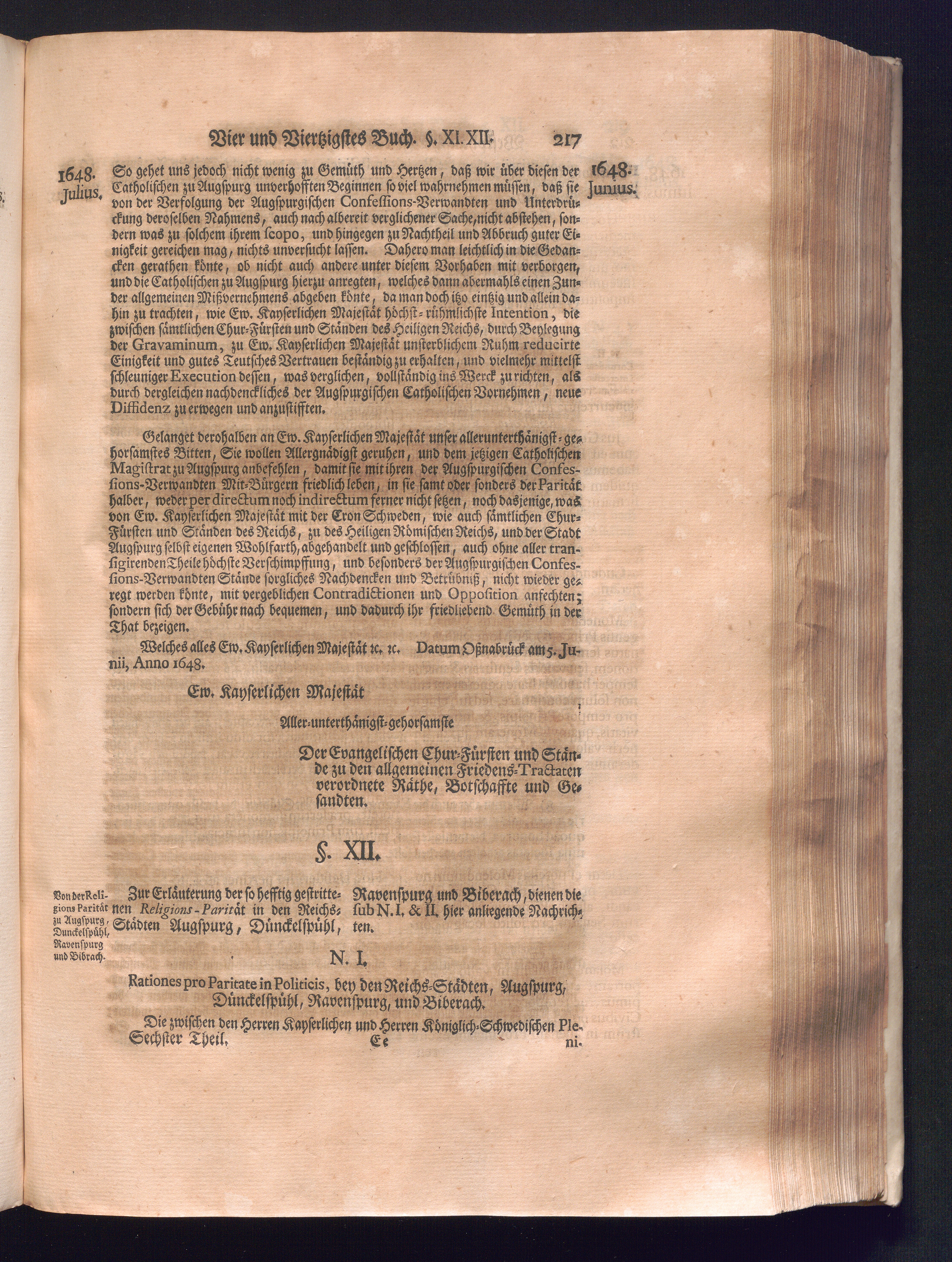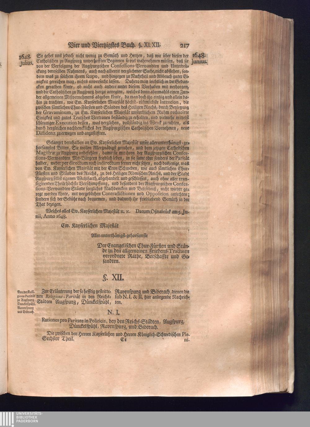 Sechster Theil (1736) Worinnen enthalten ist, was vom Monath Junio des Jahrs 1648. biß zu dem, im Jahr 1649. völlig erfolgten Schluß und Ende des Universal-Friedens-Congressus zu Oßnabrück und Münster, gehandelt und geschlossen worden