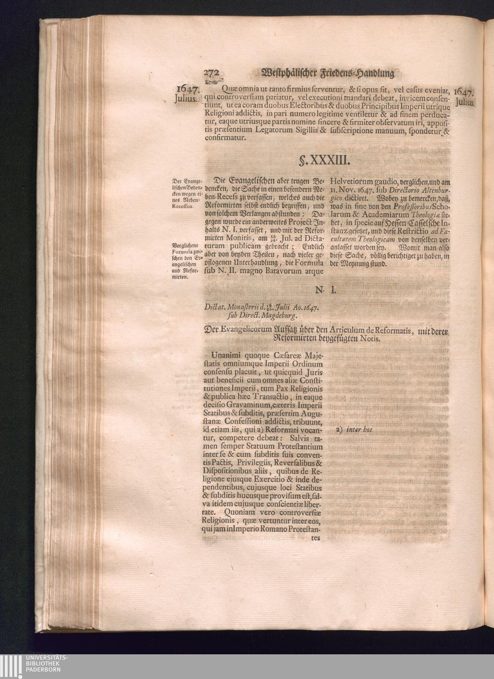 Sechster Theil (1736) Worinnen enthalten ist, was vom Monath Junio des Jahrs 1648. biß zu dem, im Jahr 1649. völlig erfolgten Schluß und Ende des Universal-Friedens-Congressus zu Oßnabrück und Münster, gehandelt und geschlossen worden