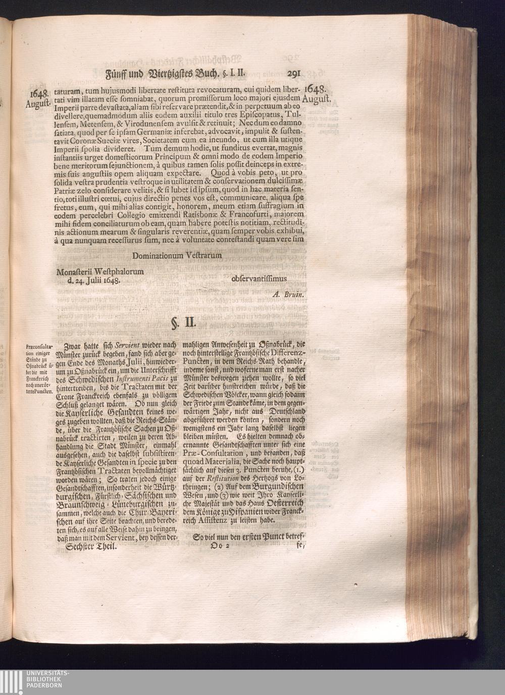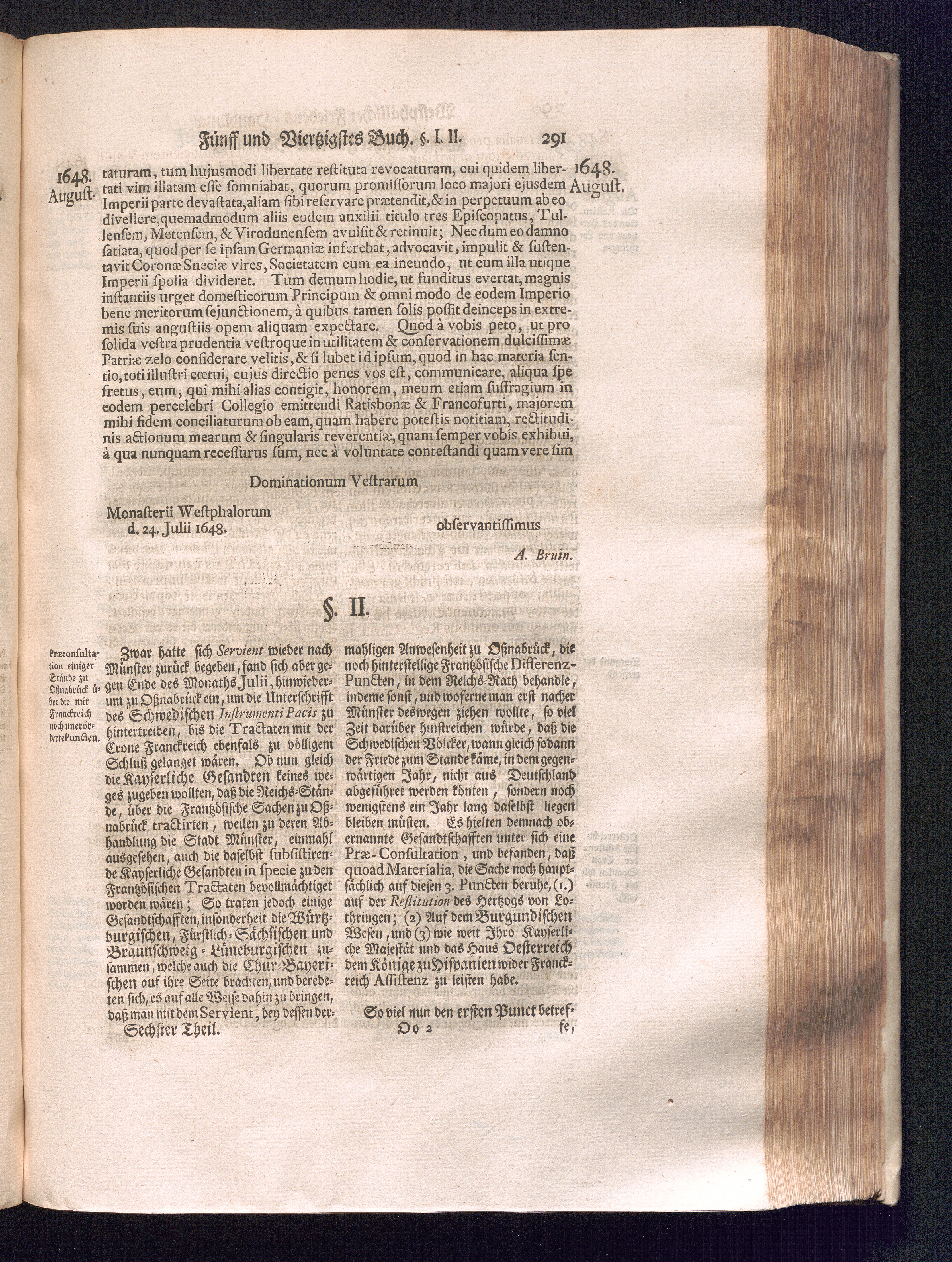Sechster Theil (1736) Worinnen enthalten ist, was vom Monath Junio des Jahrs 1648. biß zu dem, im Jahr 1649. völlig erfolgten Schluß und Ende des Universal-Friedens-Congressus zu Oßnabrück und Münster, gehandelt und geschlossen worden
