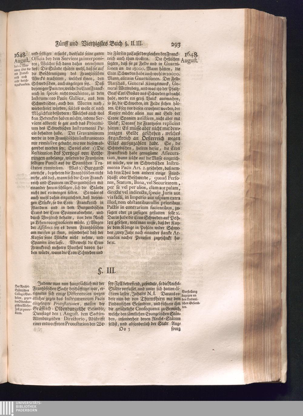 Sechster Theil (1736) Worinnen enthalten ist, was vom Monath Junio des Jahrs 1648. biß zu dem, im Jahr 1649. völlig erfolgten Schluß und Ende des Universal-Friedens-Congressus zu Oßnabrück und Münster, gehandelt und geschlossen worden