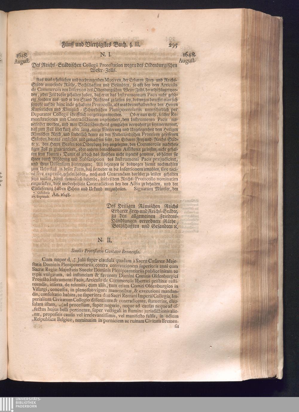 Sechster Theil (1736) Worinnen enthalten ist, was vom Monath Junio des Jahrs 1648. biß zu dem, im Jahr 1649. völlig erfolgten Schluß und Ende des Universal-Friedens-Congressus zu Oßnabrück und Münster, gehandelt und geschlossen worden