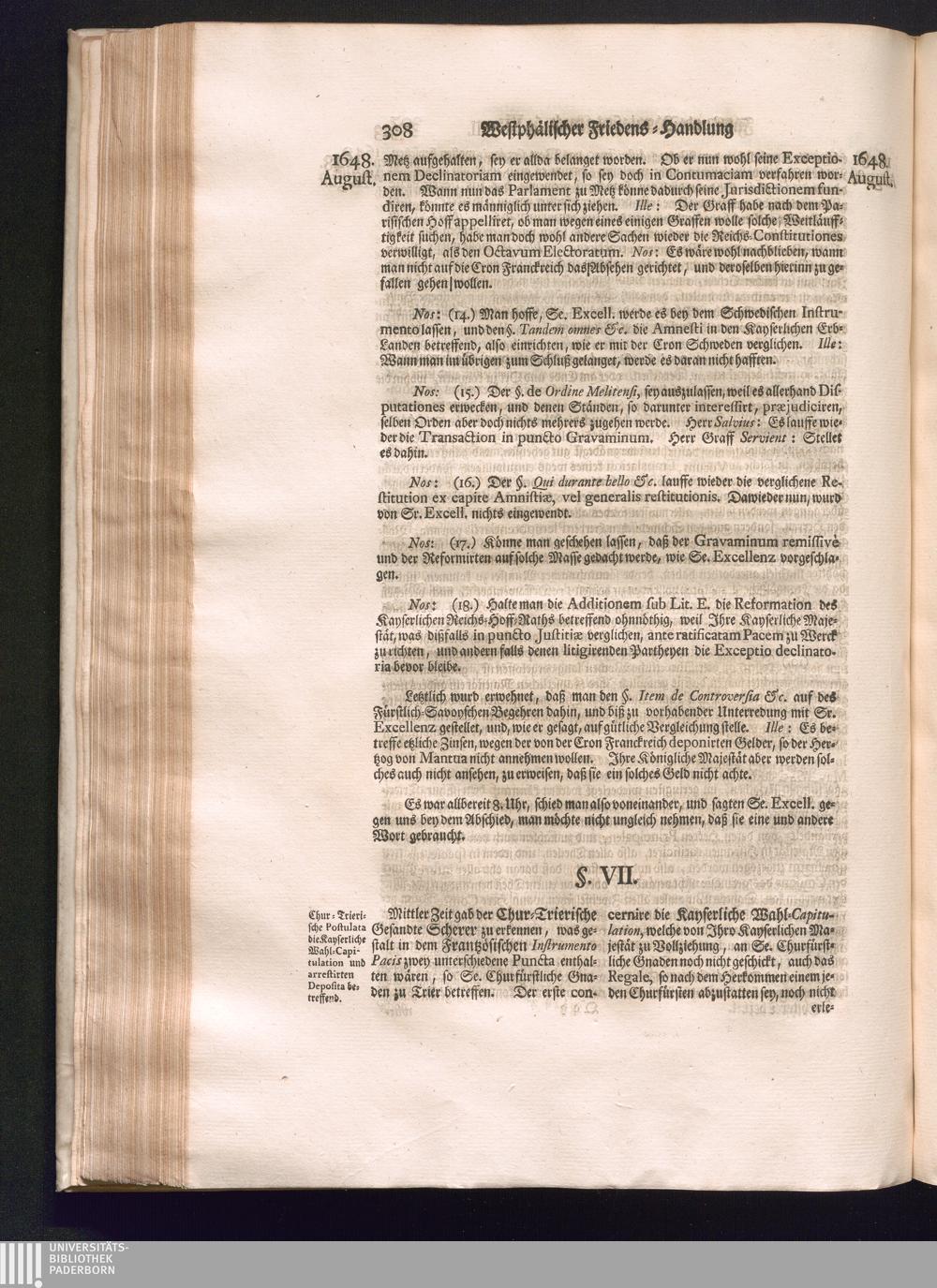 Sechster Theil (1736) Worinnen enthalten ist, was vom Monath Junio des Jahrs 1648. biß zu dem, im Jahr 1649. völlig erfolgten Schluß und Ende des Universal-Friedens-Congressus zu Oßnabrück und Münster, gehandelt und geschlossen worden