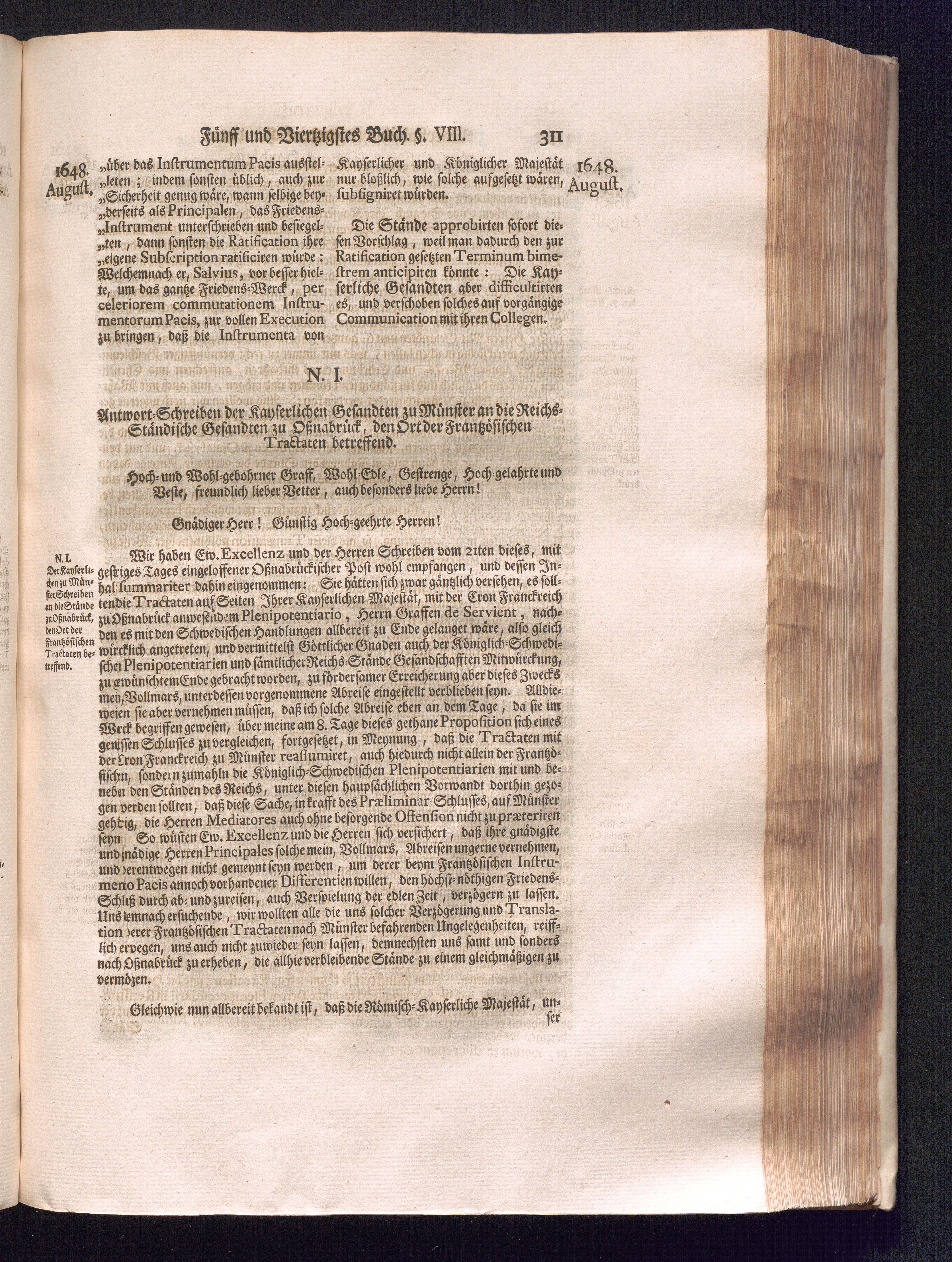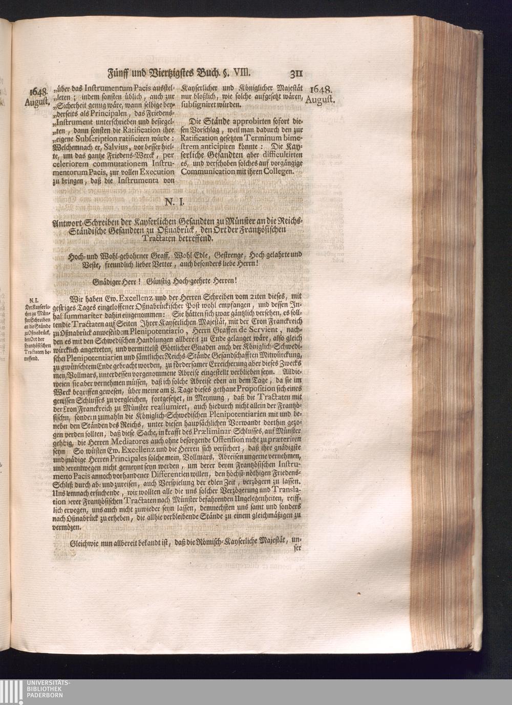 Sechster Theil (1736) Worinnen enthalten ist, was vom Monath Junio des Jahrs 1648. biß zu dem, im Jahr 1649. völlig erfolgten Schluß und Ende des Universal-Friedens-Congressus zu Oßnabrück und Münster, gehandelt und geschlossen worden