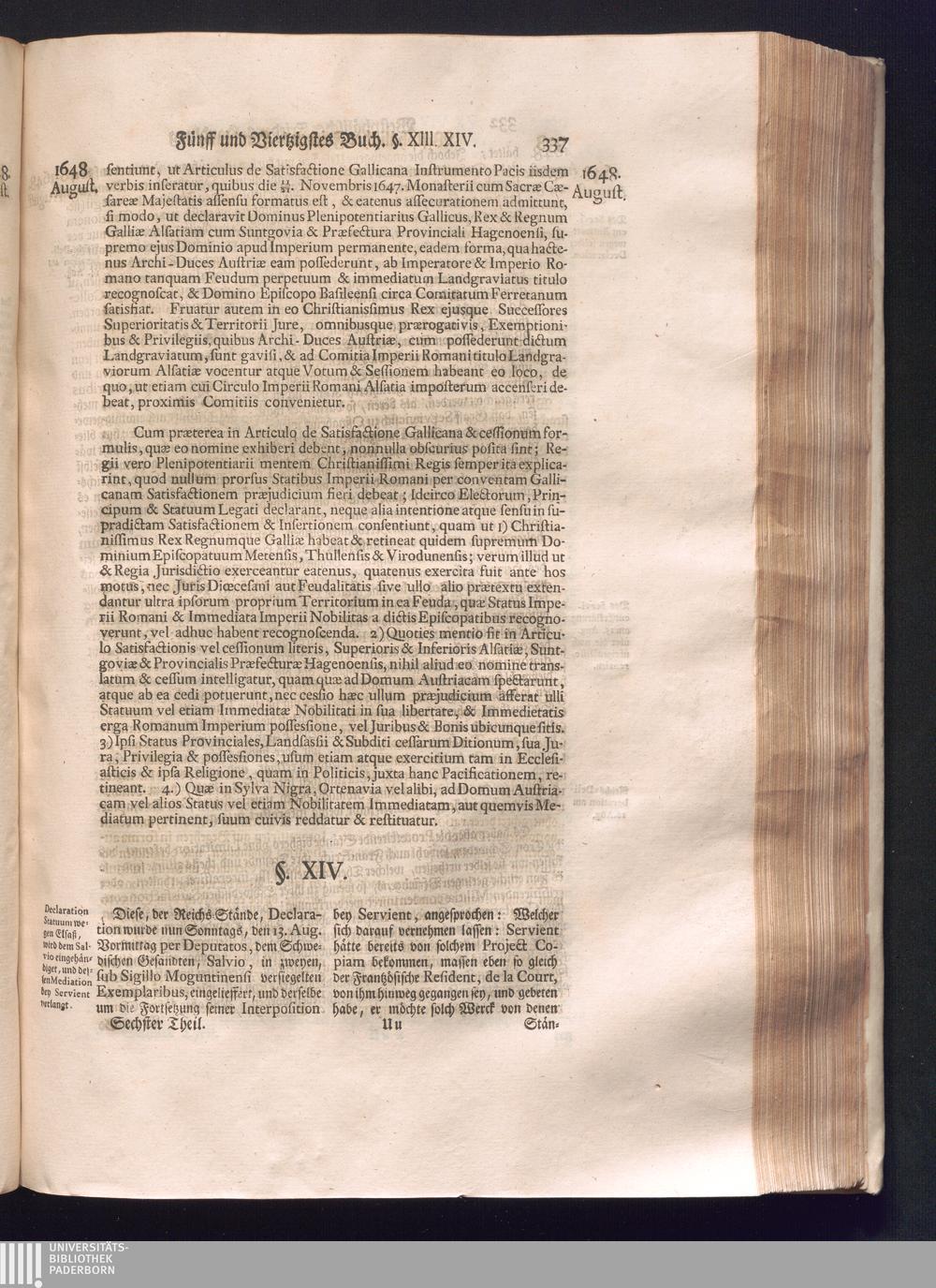 Sechster Theil (1736) Worinnen enthalten ist, was vom Monath Junio des Jahrs 1648. biß zu dem, im Jahr 1649. völlig erfolgten Schluß und Ende des Universal-Friedens-Congressus zu Oßnabrück und Münster, gehandelt und geschlossen worden