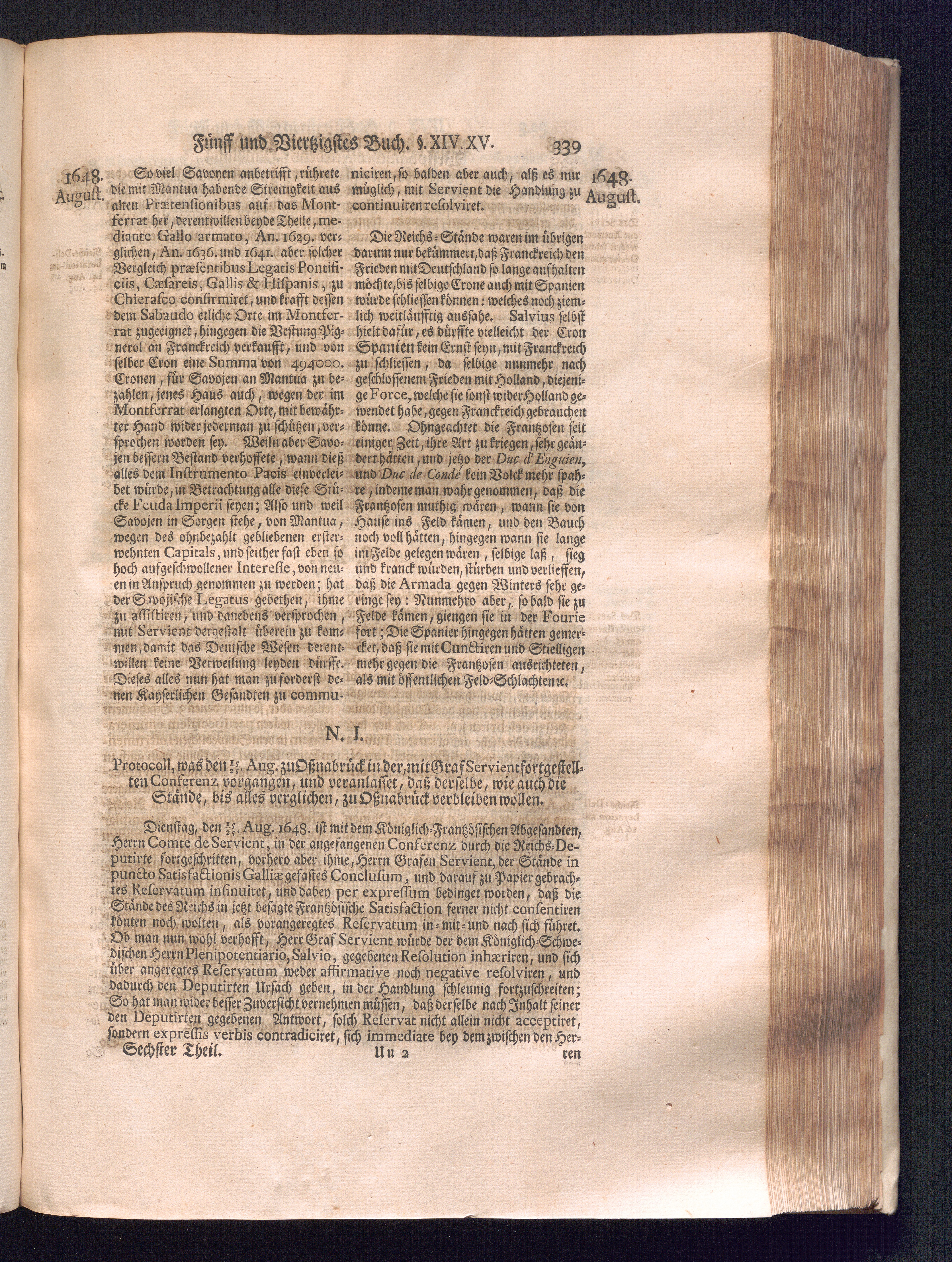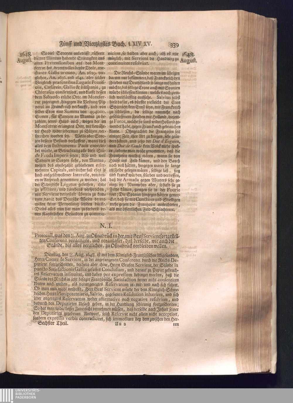 Sechster Theil (1736) Worinnen enthalten ist, was vom Monath Junio des Jahrs 1648. biß zu dem, im Jahr 1649. völlig erfolgten Schluß und Ende des Universal-Friedens-Congressus zu Oßnabrück und Münster, gehandelt und geschlossen worden