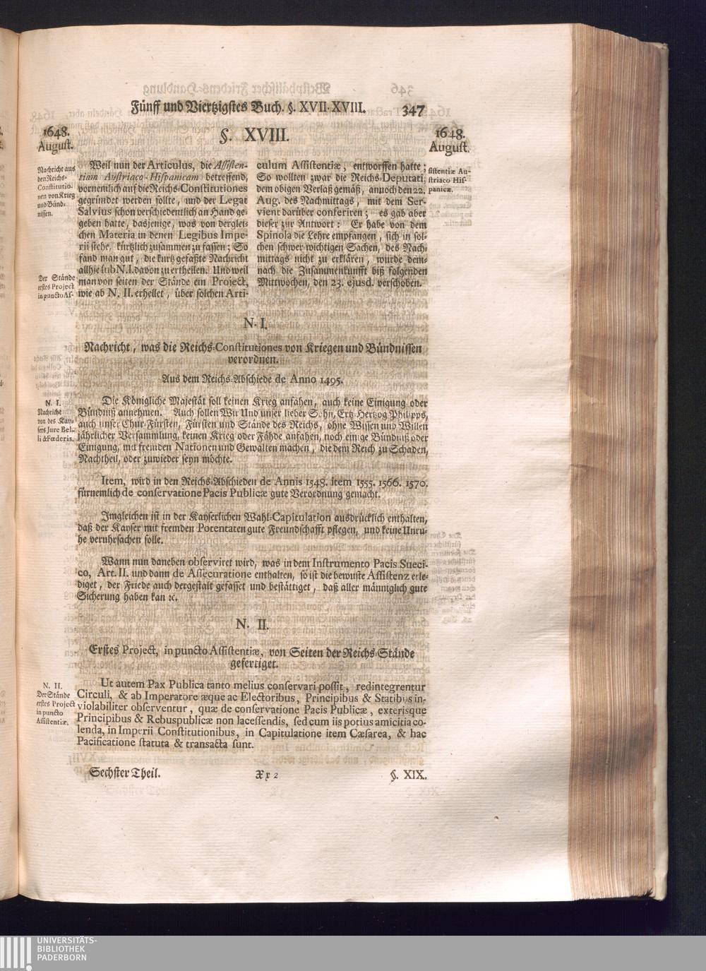Sechster Theil (1736) Worinnen enthalten ist, was vom Monath Junio des Jahrs 1648. biß zu dem, im Jahr 1649. völlig erfolgten Schluß und Ende des Universal-Friedens-Congressus zu Oßnabrück und Münster, gehandelt und geschlossen worden