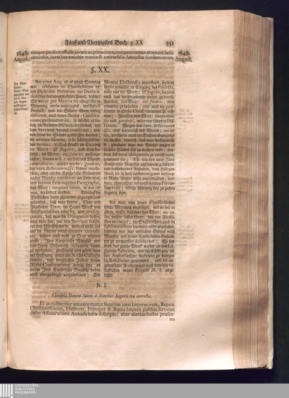 Sechster Theil (1736) Worinnen enthalten ist, was vom Monath Junio des Jahrs 1648. biß zu dem, im Jahr 1649. völlig erfolgten Schluß und Ende des Universal-Friedens-Congressus zu Oßnabrück und Münster, gehandelt und geschlossen worden