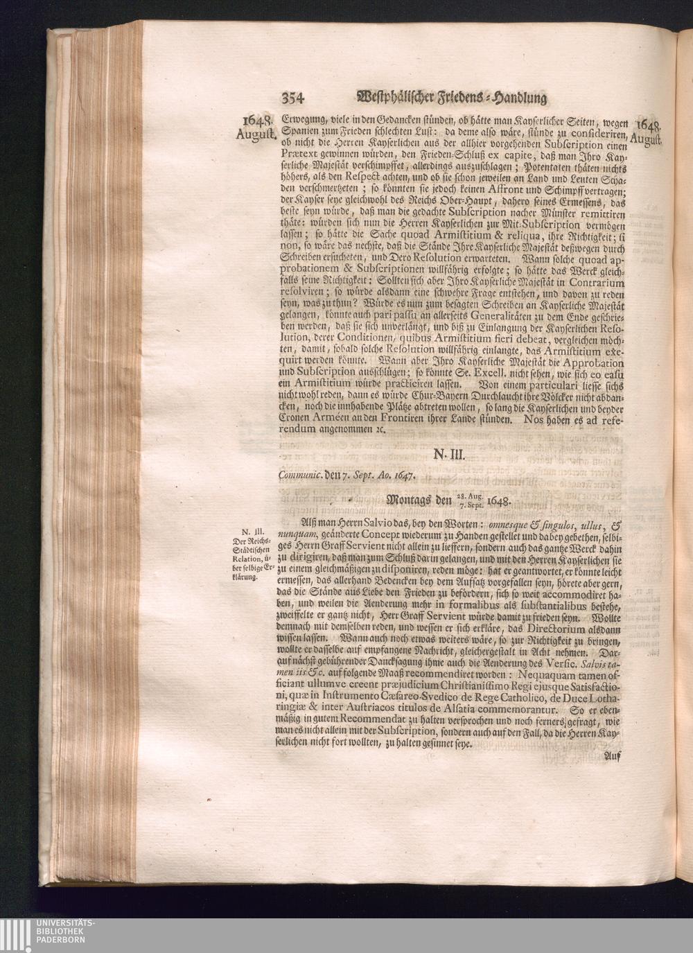 Sechster Theil (1736) Worinnen enthalten ist, was vom Monath Junio des Jahrs 1648. biß zu dem, im Jahr 1649. völlig erfolgten Schluß und Ende des Universal-Friedens-Congressus zu Oßnabrück und Münster, gehandelt und geschlossen worden