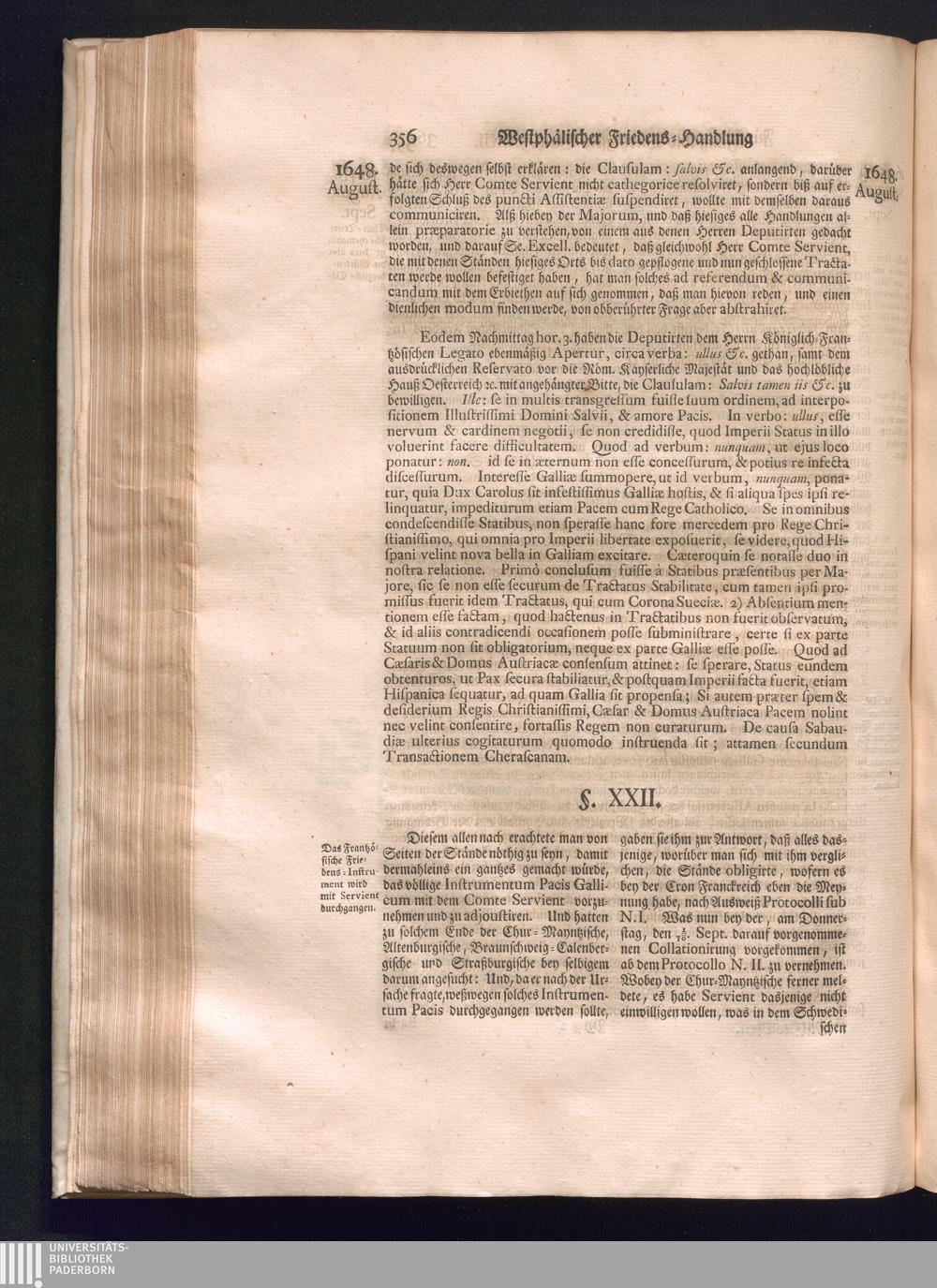 Sechster Theil (1736) Worinnen enthalten ist, was vom Monath Junio des Jahrs 1648. biß zu dem, im Jahr 1649. völlig erfolgten Schluß und Ende des Universal-Friedens-Congressus zu Oßnabrück und Münster, gehandelt und geschlossen worden