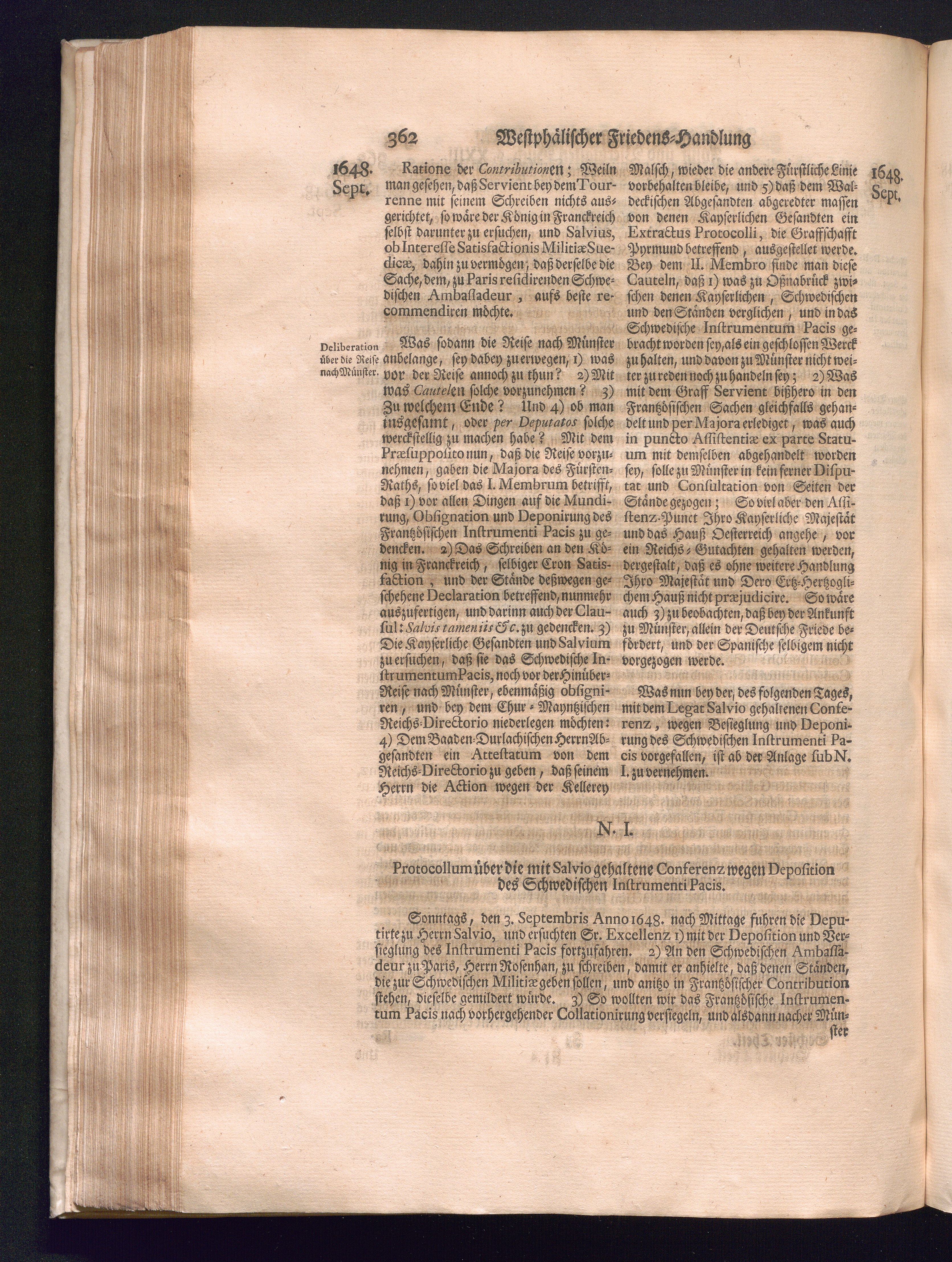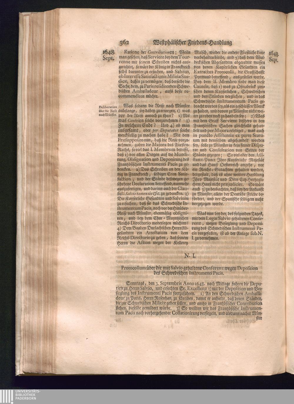 Sechster Theil (1736) Worinnen enthalten ist, was vom Monath Junio des Jahrs 1648. biß zu dem, im Jahr 1649. völlig erfolgten Schluß und Ende des Universal-Friedens-Congressus zu Oßnabrück und Münster, gehandelt und geschlossen worden