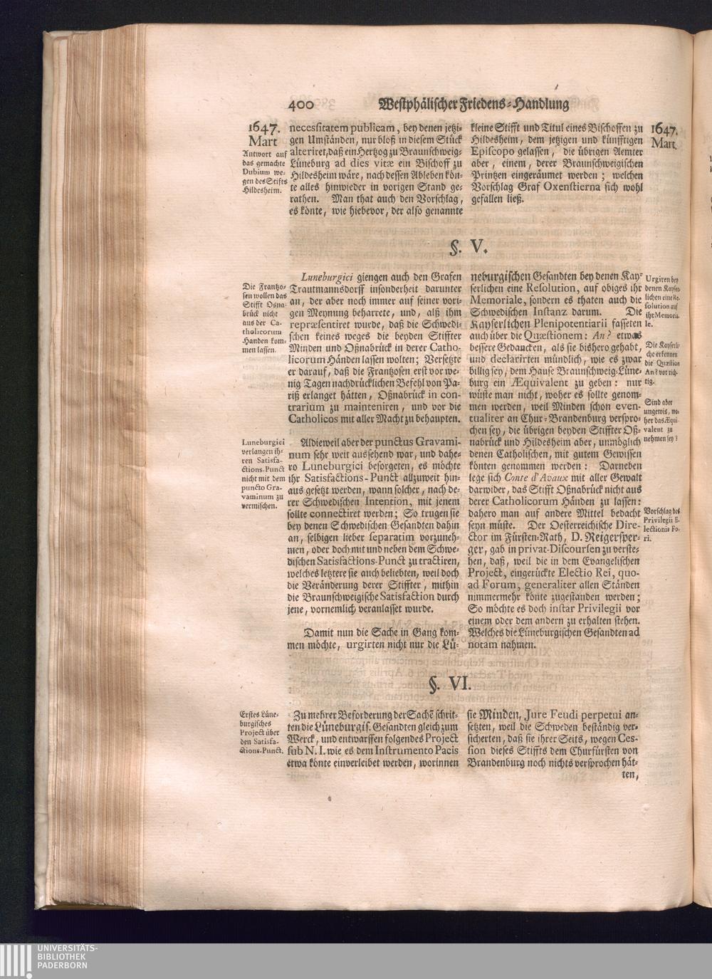 Sechster Theil (1736) Worinnen enthalten ist, was vom Monath Junio des Jahrs 1648. biß zu dem, im Jahr 1649. völlig erfolgten Schluß und Ende des Universal-Friedens-Congressus zu Oßnabrück und Münster, gehandelt und geschlossen worden
