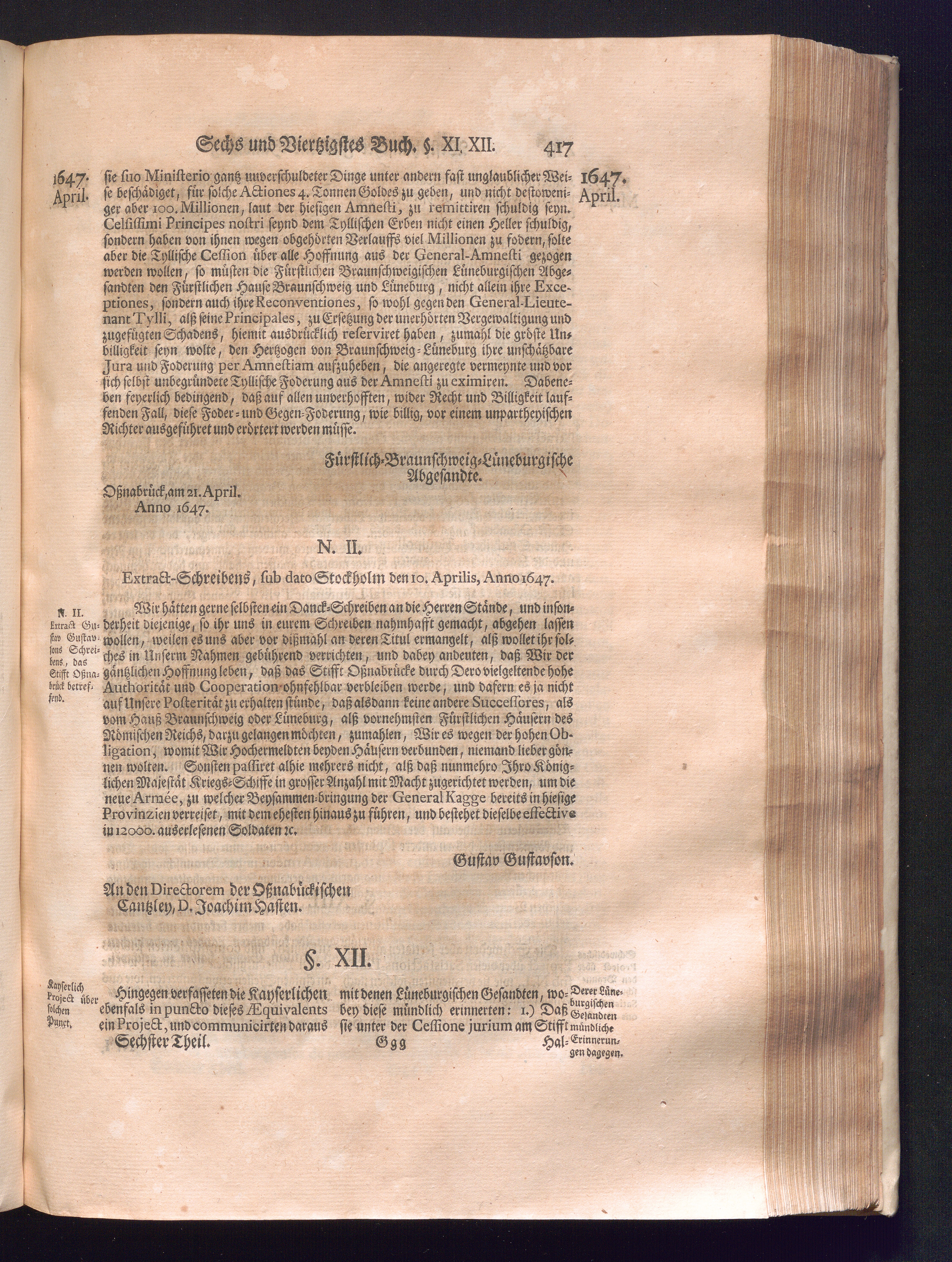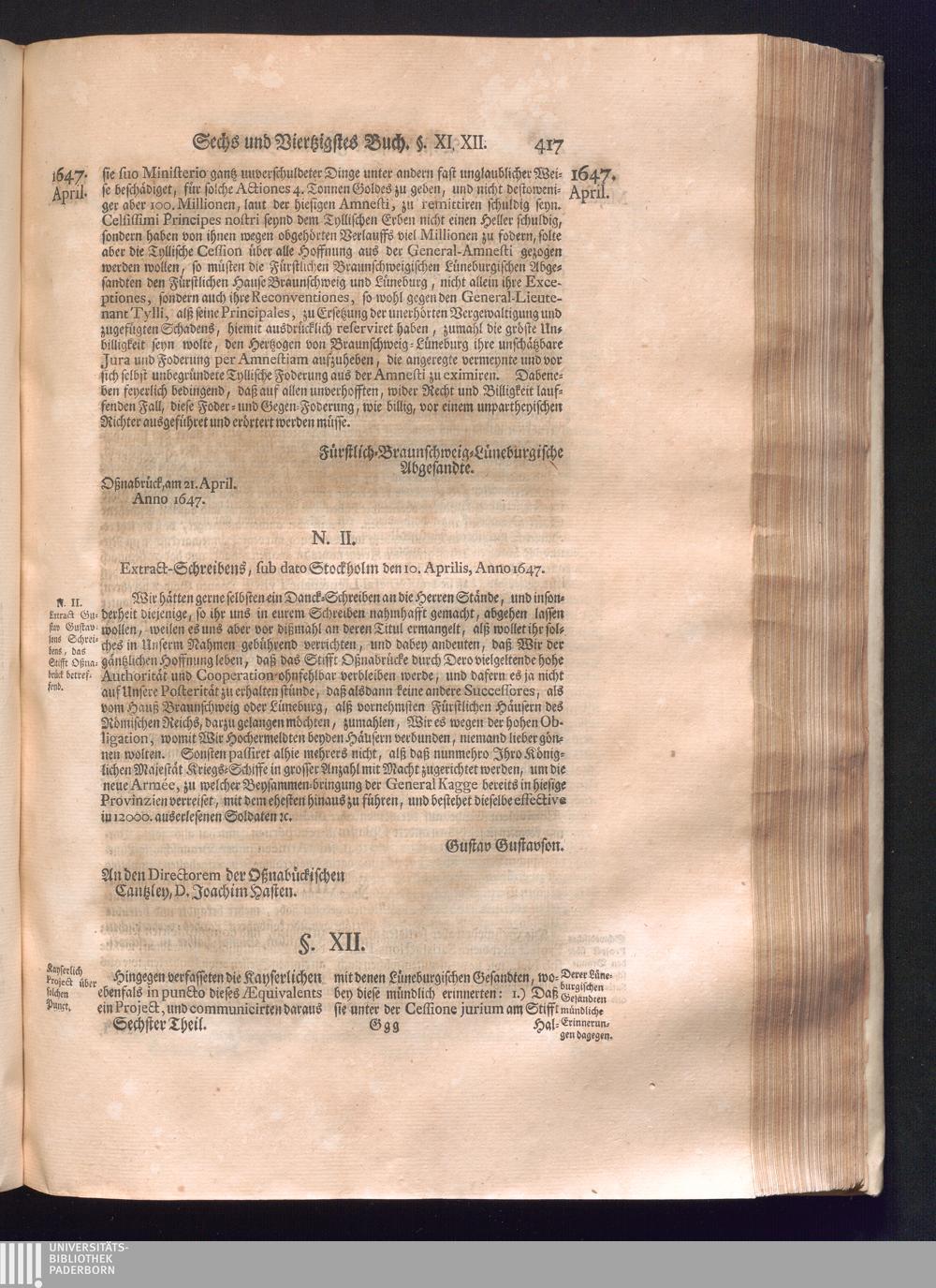 Sechster Theil (1736) Worinnen enthalten ist, was vom Monath Junio des Jahrs 1648. biß zu dem, im Jahr 1649. völlig erfolgten Schluß und Ende des Universal-Friedens-Congressus zu Oßnabrück und Münster, gehandelt und geschlossen worden