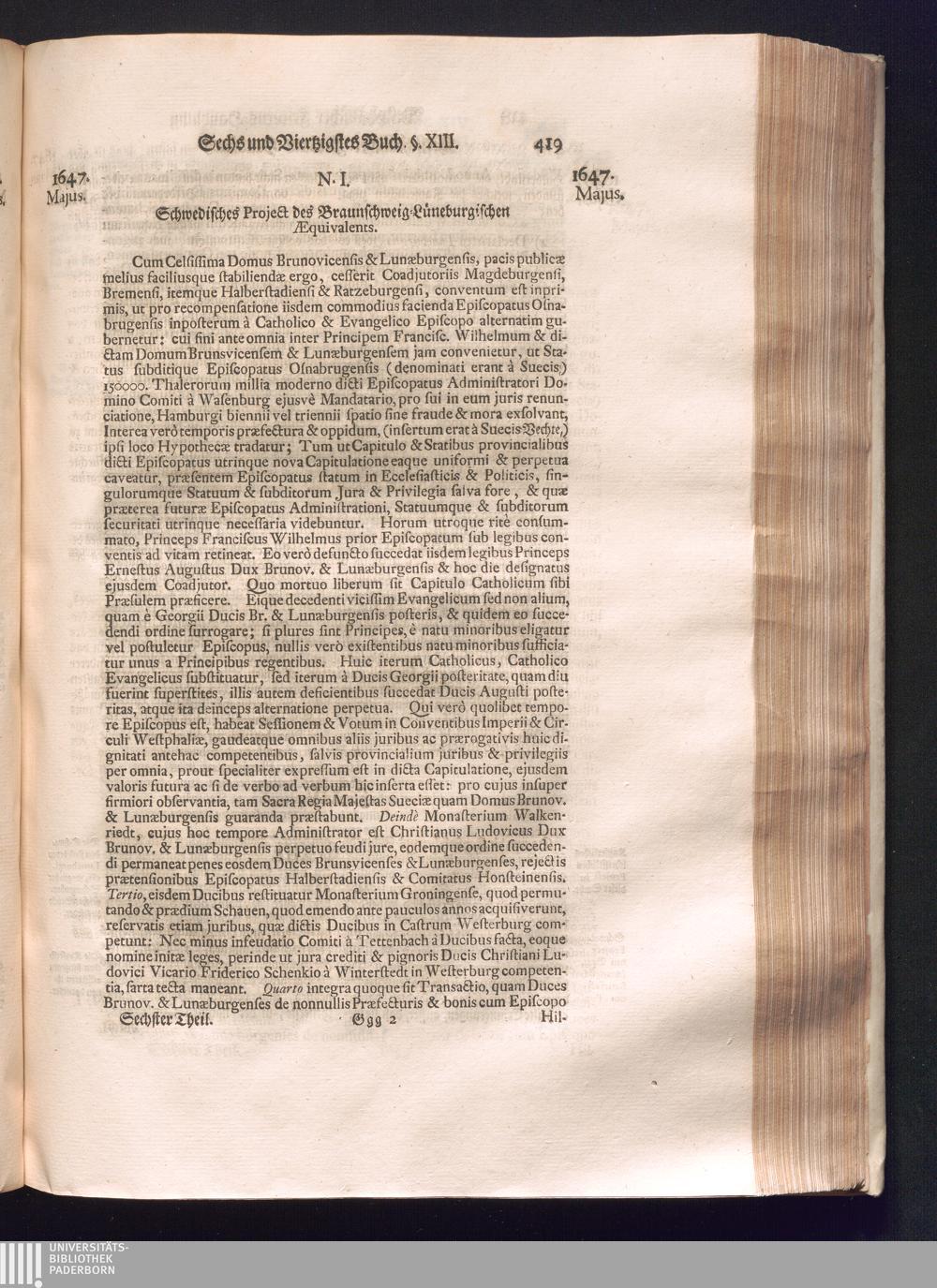 Sechster Theil (1736) Worinnen enthalten ist, was vom Monath Junio des Jahrs 1648. biß zu dem, im Jahr 1649. völlig erfolgten Schluß und Ende des Universal-Friedens-Congressus zu Oßnabrück und Münster, gehandelt und geschlossen worden