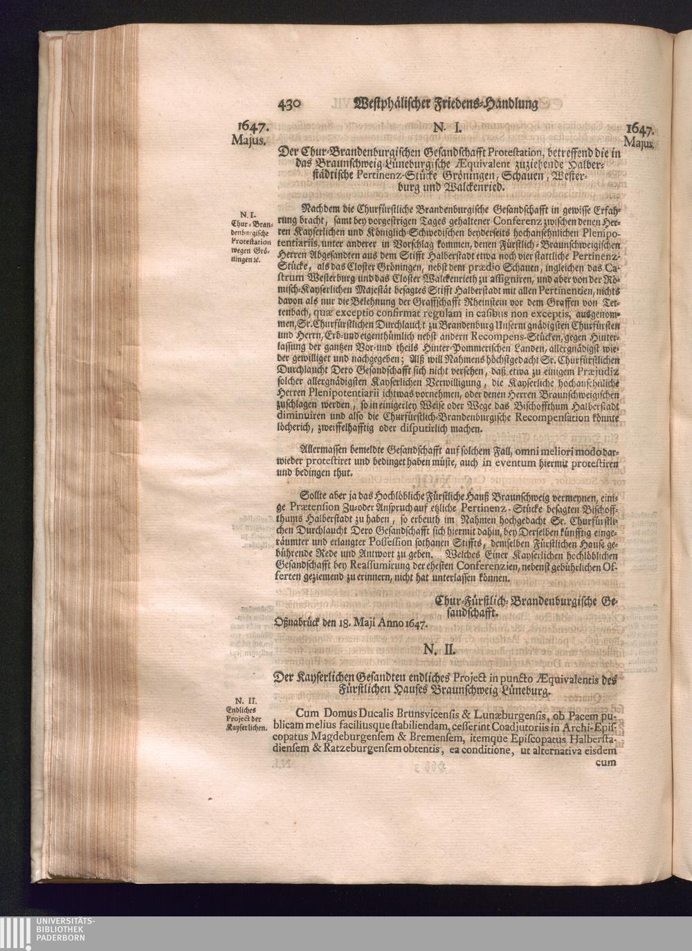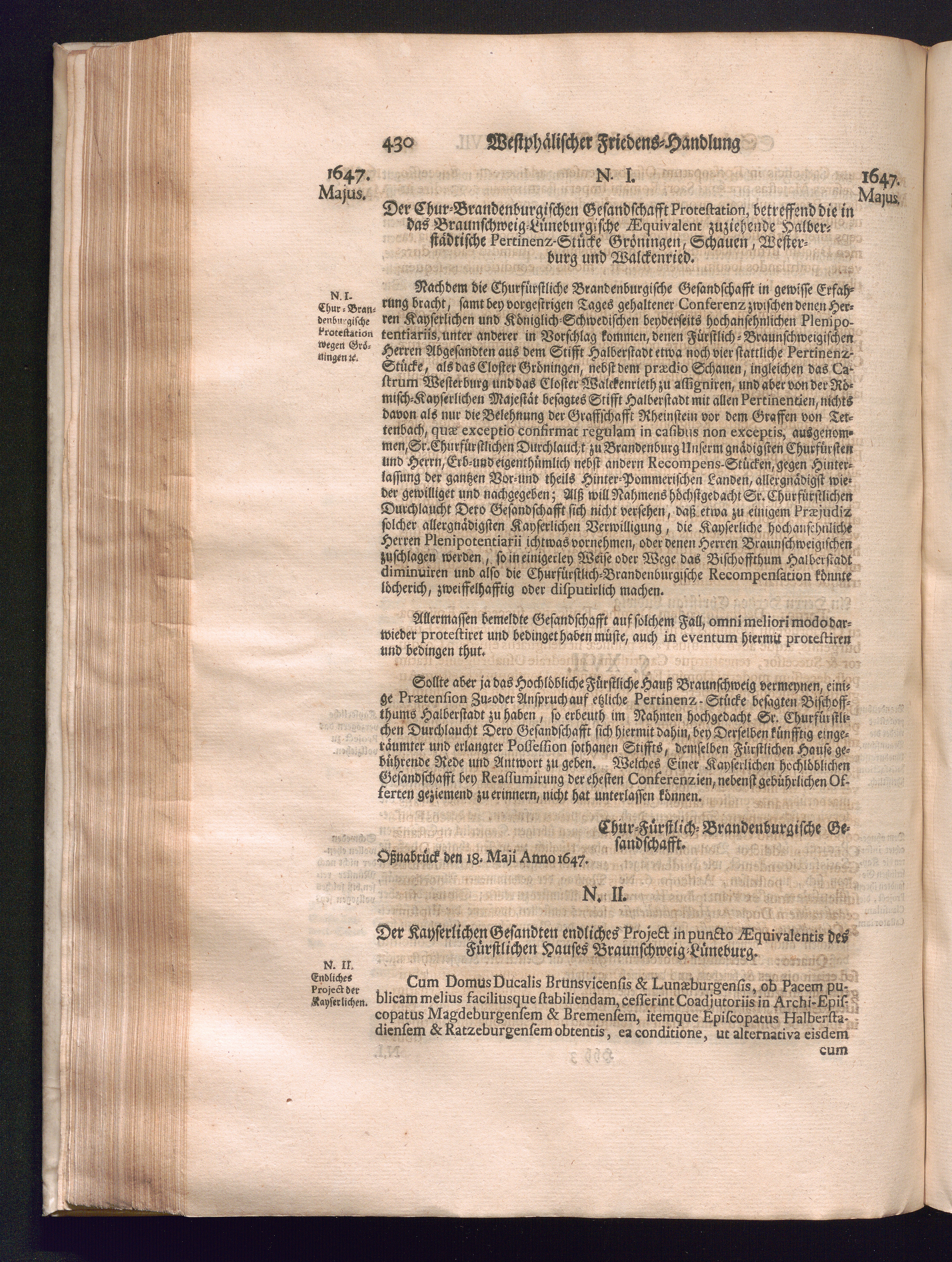 Sechster Theil (1736) Worinnen enthalten ist, was vom Monath Junio des Jahrs 1648. biß zu dem, im Jahr 1649. völlig erfolgten Schluß und Ende des Universal-Friedens-Congressus zu Oßnabrück und Münster, gehandelt und geschlossen worden