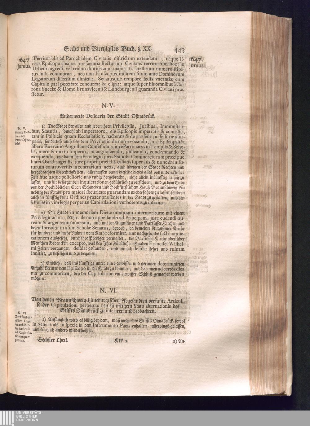 Sechster Theil (1736) Worinnen enthalten ist, was vom Monath Junio des Jahrs 1648. biß zu dem, im Jahr 1649. völlig erfolgten Schluß und Ende des Universal-Friedens-Congressus zu Oßnabrück und Münster, gehandelt und geschlossen worden