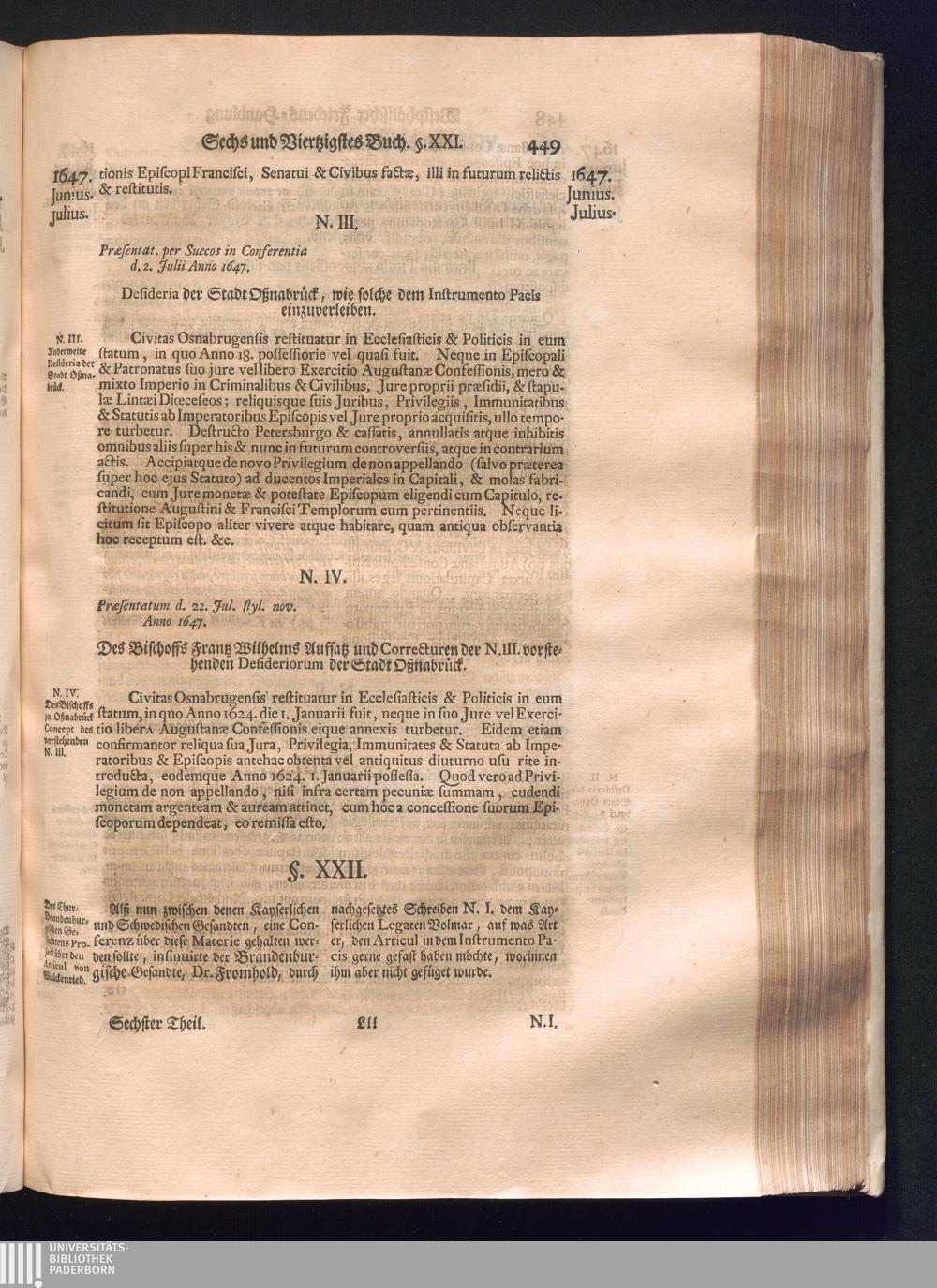 Sechster Theil (1736) Worinnen enthalten ist, was vom Monath Junio des Jahrs 1648. biß zu dem, im Jahr 1649. völlig erfolgten Schluß und Ende des Universal-Friedens-Congressus zu Oßnabrück und Münster, gehandelt und geschlossen worden