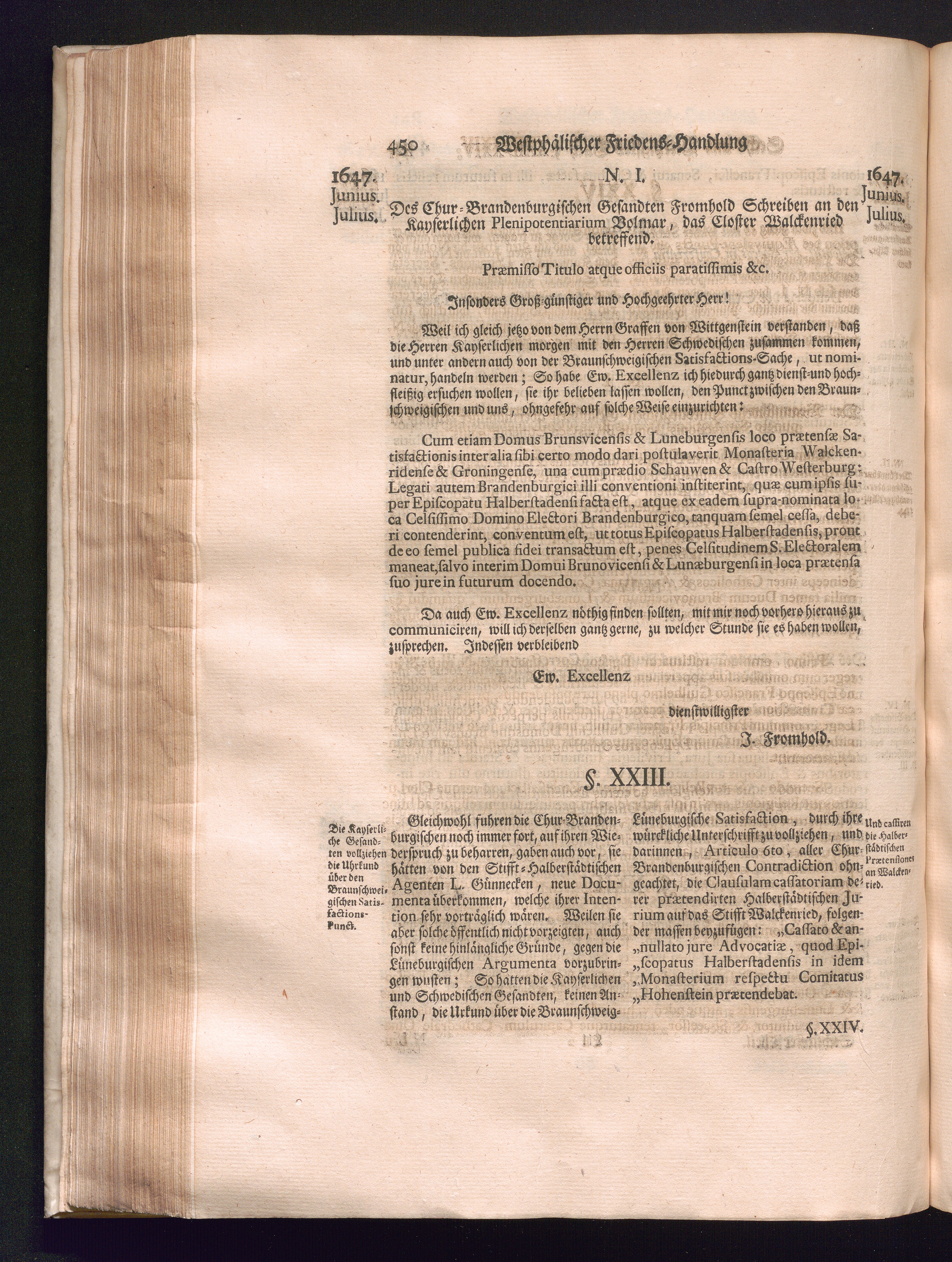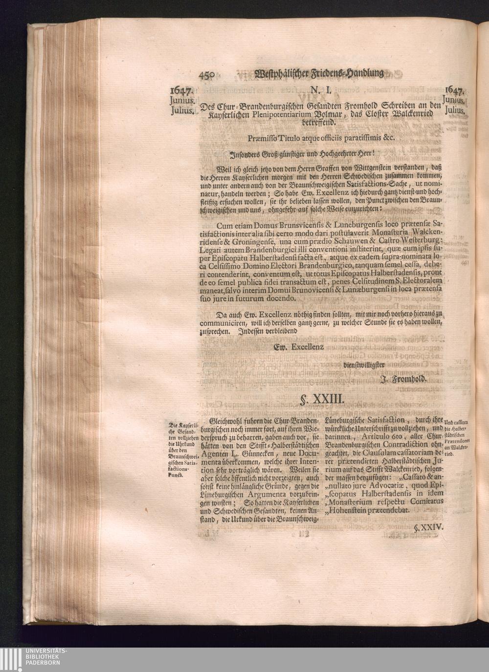 Sechster Theil (1736) Worinnen enthalten ist, was vom Monath Junio des Jahrs 1648. biß zu dem, im Jahr 1649. völlig erfolgten Schluß und Ende des Universal-Friedens-Congressus zu Oßnabrück und Münster, gehandelt und geschlossen worden