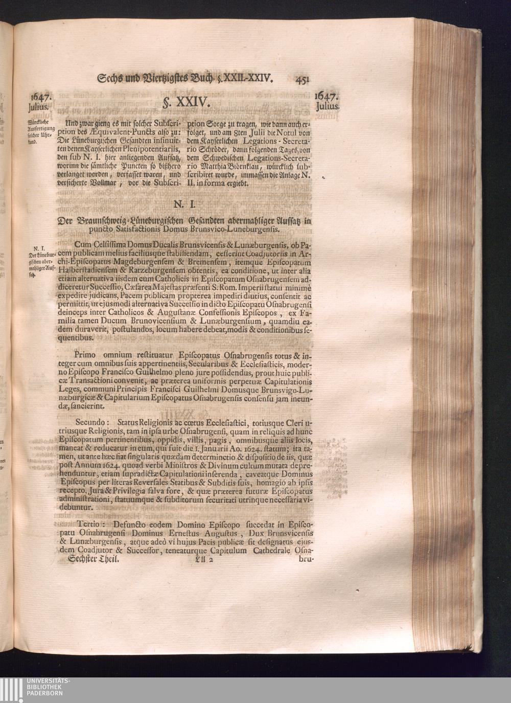 Sechster Theil (1736) Worinnen enthalten ist, was vom Monath Junio des Jahrs 1648. biß zu dem, im Jahr 1649. völlig erfolgten Schluß und Ende des Universal-Friedens-Congressus zu Oßnabrück und Münster, gehandelt und geschlossen worden
