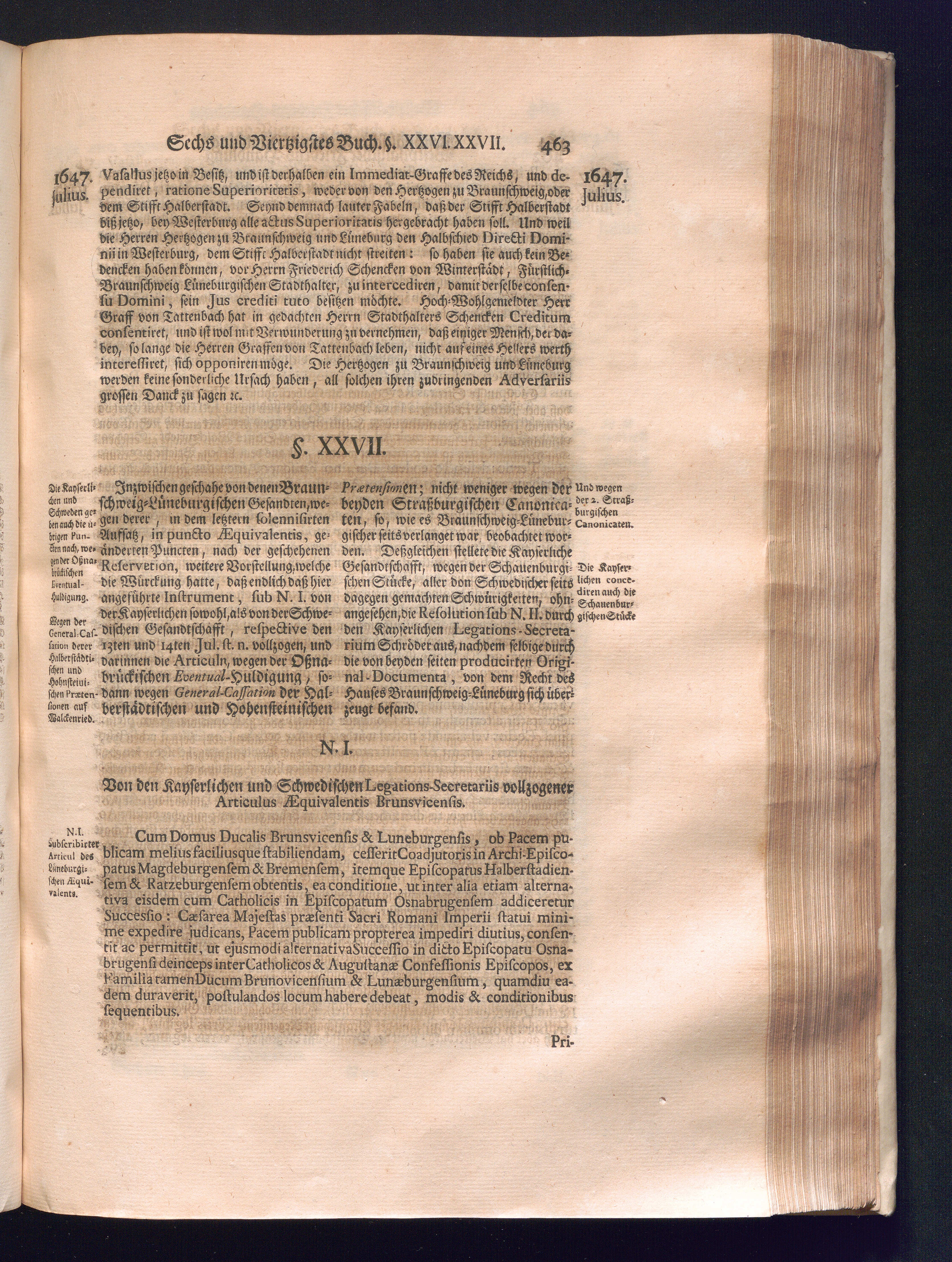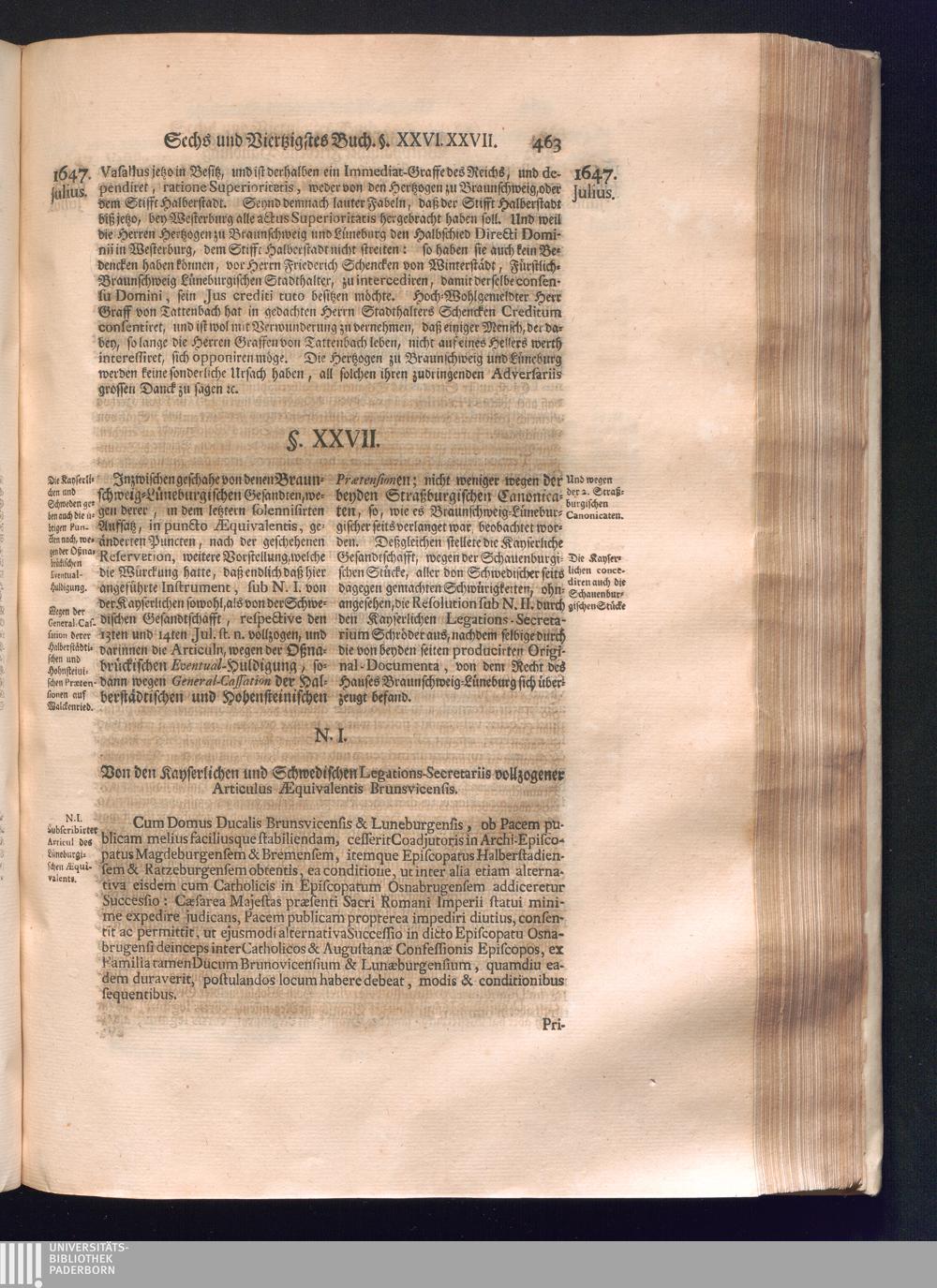 Sechster Theil (1736) Worinnen enthalten ist, was vom Monath Junio des Jahrs 1648. biß zu dem, im Jahr 1649. völlig erfolgten Schluß und Ende des Universal-Friedens-Congressus zu Oßnabrück und Münster, gehandelt und geschlossen worden