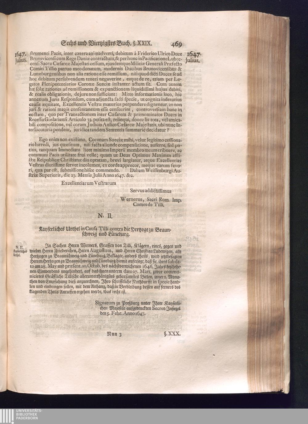 Sechster Theil (1736) Worinnen enthalten ist, was vom Monath Junio des Jahrs 1648. biß zu dem, im Jahr 1649. völlig erfolgten Schluß und Ende des Universal-Friedens-Congressus zu Oßnabrück und Münster, gehandelt und geschlossen worden