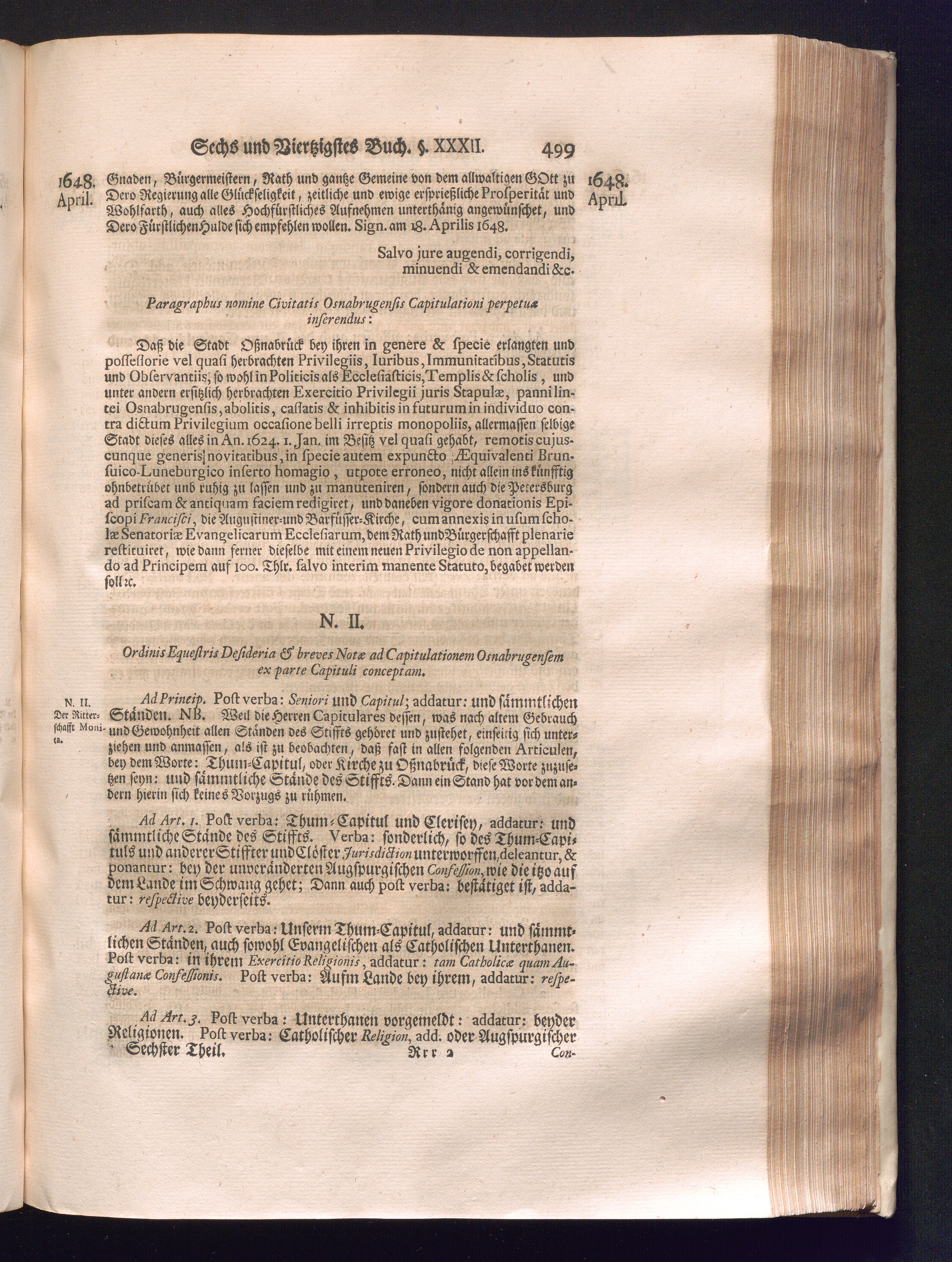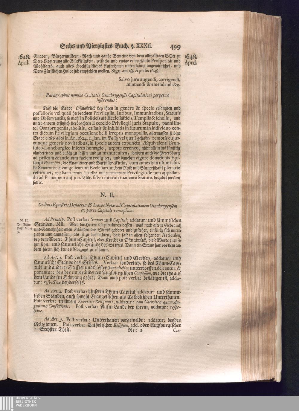 Sechster Theil (1736) Worinnen enthalten ist, was vom Monath Junio des Jahrs 1648. biß zu dem, im Jahr 1649. völlig erfolgten Schluß und Ende des Universal-Friedens-Congressus zu Oßnabrück und Münster, gehandelt und geschlossen worden