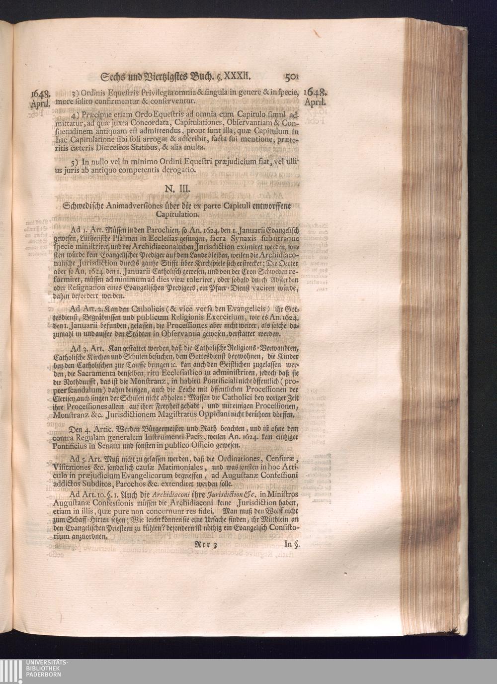 Sechster Theil (1736) Worinnen enthalten ist, was vom Monath Junio des Jahrs 1648. biß zu dem, im Jahr 1649. völlig erfolgten Schluß und Ende des Universal-Friedens-Congressus zu Oßnabrück und Münster, gehandelt und geschlossen worden